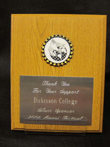 Silver sponsor plaque presented to Dickinson College by the Amani Festival.