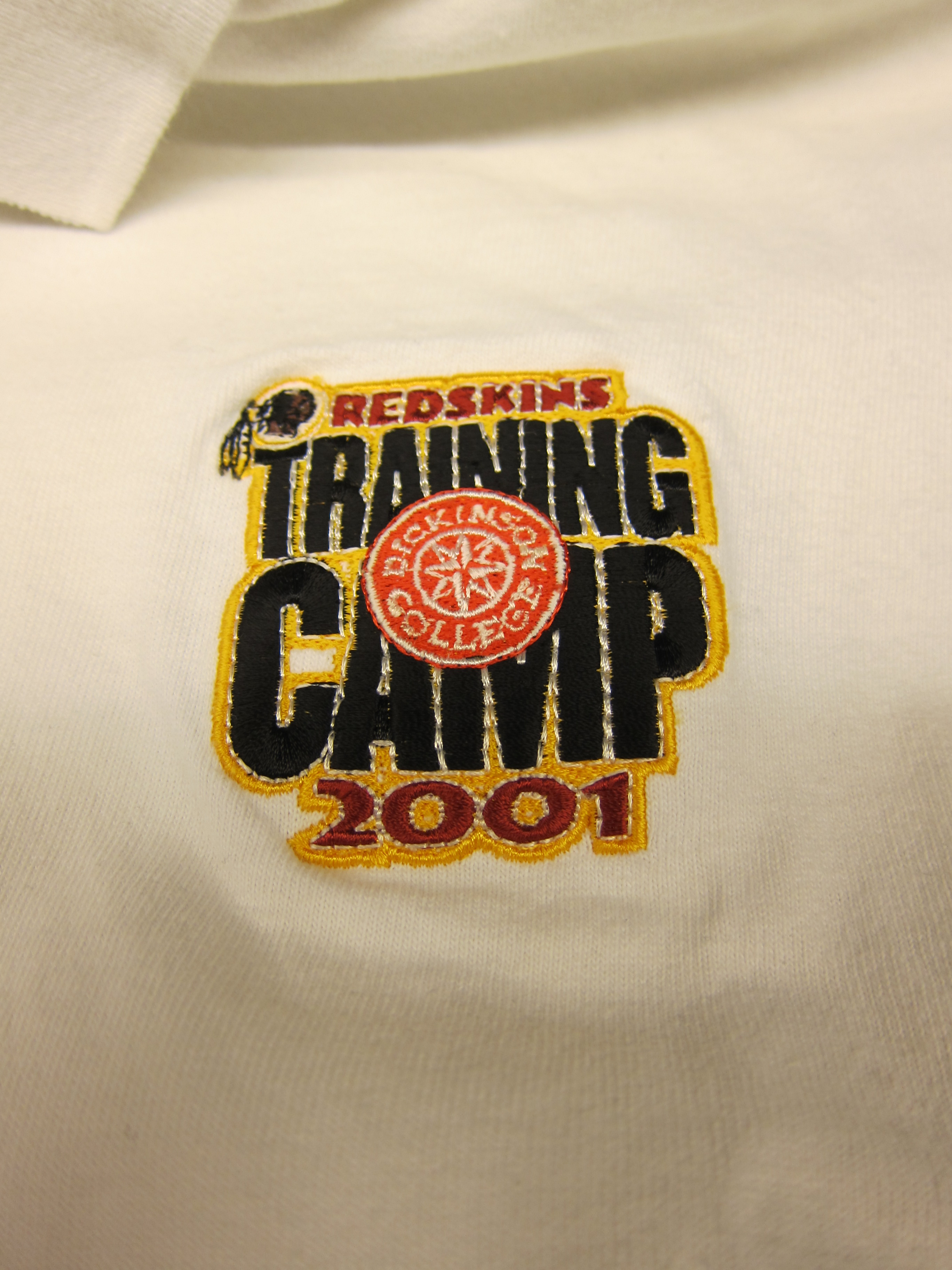 White Washington Redskins Training Camp polo shirt with short sleeves from 2001.