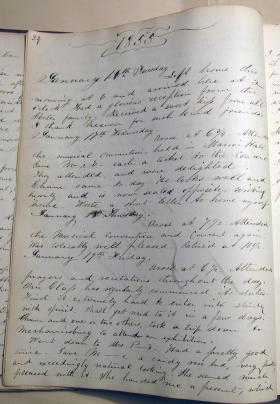 Horatio Collins King's diary during the spring of his first year at Dickinson College. King is a member of the class of 1858. Transcript included.