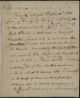 George Clymer of Philadelphia writes John Montgomery and asks for payment of tax on 300 acres he owns in Greenwood, Cumberland County. Clymer notes that Montgomery is in a danger of losing his investment.