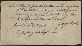 George Wood sends an order to Jasper Yeates to pay a debt to John Montgomery.  Includes Montgomery's receipt dated October 19, 1774.