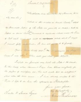 James Buchanan writes Charles H. Shriner regarding the status of the Democratic party in Union County, Pennsylvania. "What is the matter in Union County?," as Buchanan asks. Transcript included.