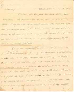 Senator James Buchanan writes to V. Best and discusses whether to vote for or against "Colonel Benton’s Expunging resolution." "I have been somewhat astonished that several of my friends in Pennsylvania have advised me to disobey the Instructions of the [Pennsylvania] Legislature," as Buchanan notes. Transcript included.