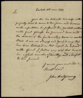 John Montgomery writes to General Anthony Wayne, complimenting Wayne's son on his conduct and oratory skills. Transcript included.