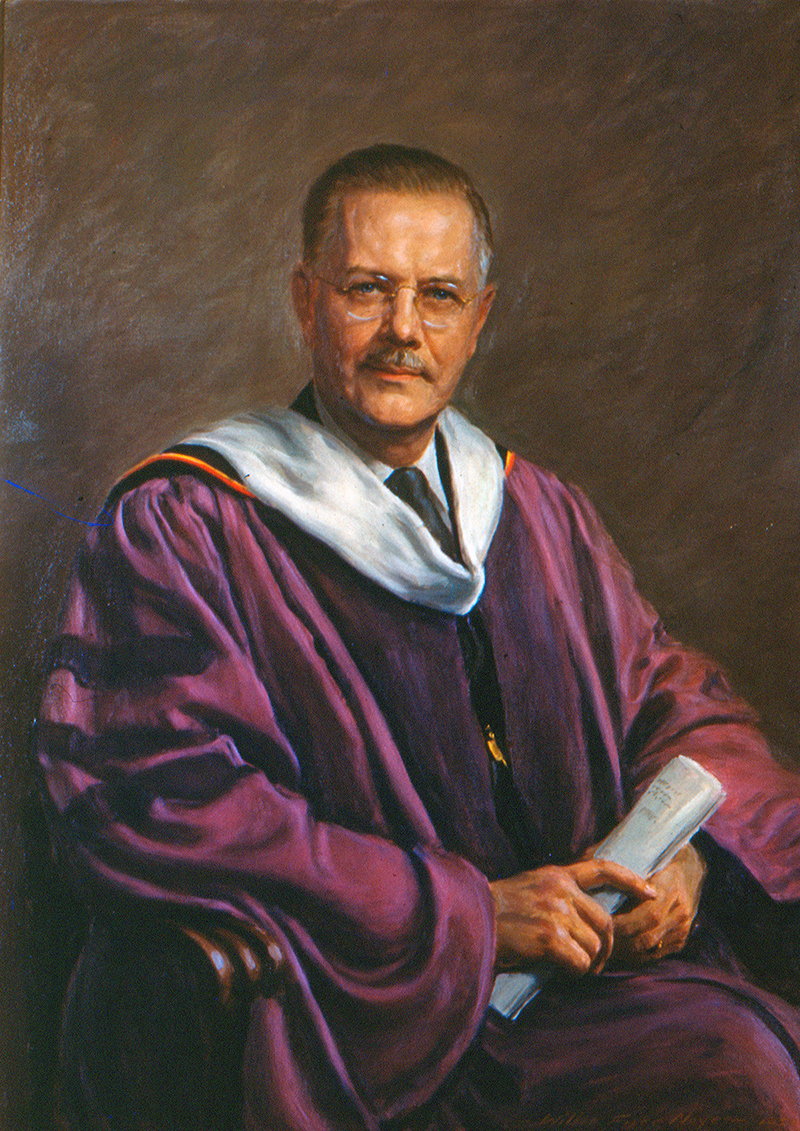 After graduation, Edel and six other members of the class of 1915 enrolled in the School of Theology at Boston University. Edel graduated from that institution in 1918. The outbreak of war caused him to enlist as a chaplain in the U.S. Navy on July 11, 1917. During his thirty-year career, Edel saw service at sea in the Atlantic, served as superintendent of education in American Samoa, and was area chaplain for the South Pacific during the Second World War. In 1935, he received an honorary Doctor of Divinity degree from his alma mater. Ten years later, Edel was nearing retirement as a captain, the highest rank then open to a naval chaplain. The Dickinson board of trustees, having been unable to secure other earlier choices, turned to Edel on June 7, 1946 and elected him as the twenty-second president of the College.