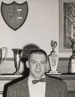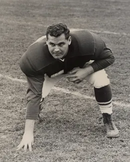 Martin Altman, a member of the Class of 1959, in his football uniform.