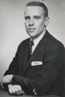 Rexford Scott Clements, a member of the Class of 1959, in his football uniform.