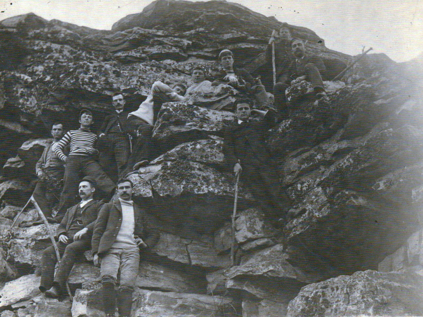 Photograph of members of the Class of 1892 at "Flat Rock" (Doubling Gap?) on May 12, 1892. Location Photograph Archives Format Photographic Print, B&W Decade 1890-1899 Class Year Class of 1892 Roles Students