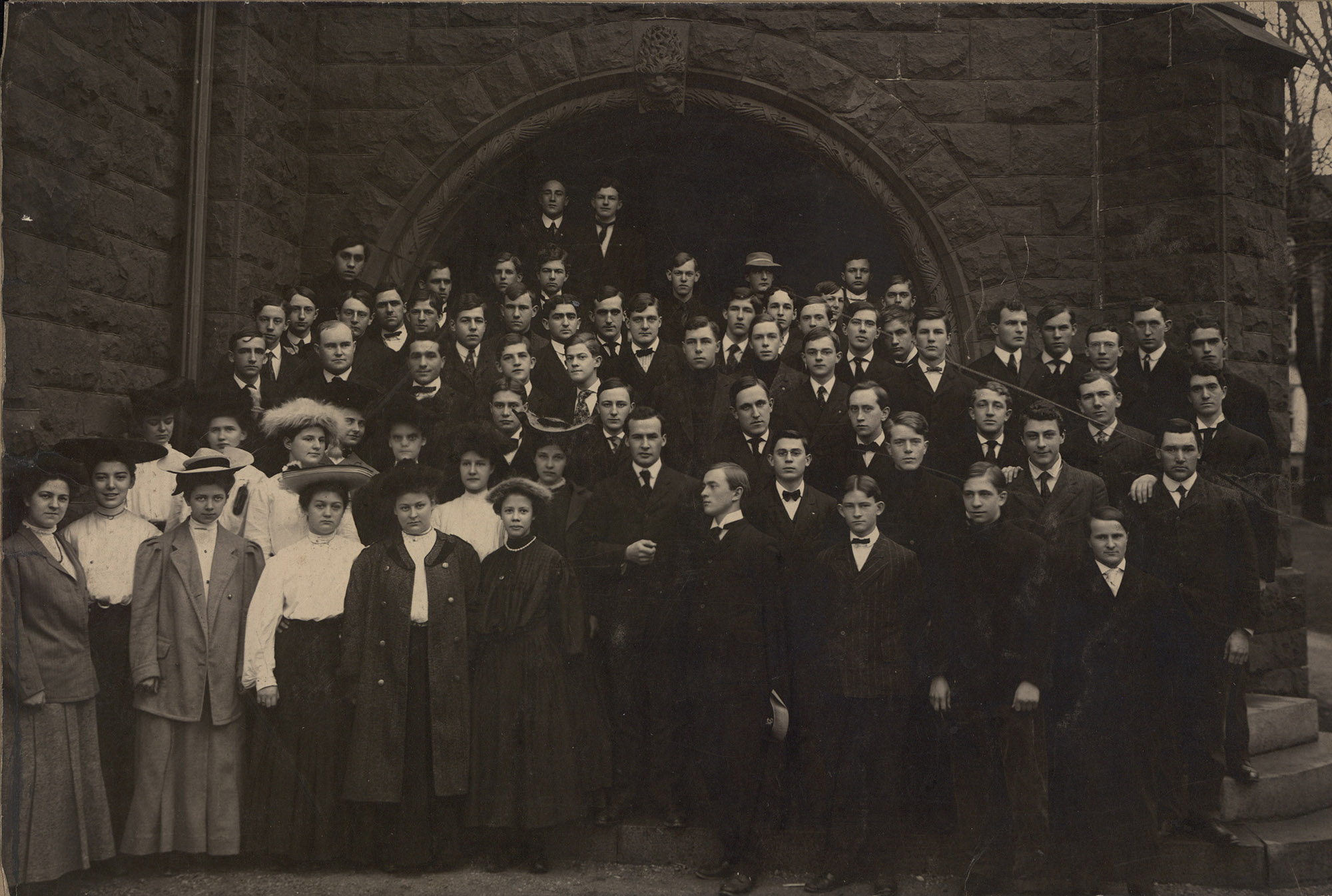 The Class of 1909 stands outside the main entrance of Bosler Hall during their freshman year.