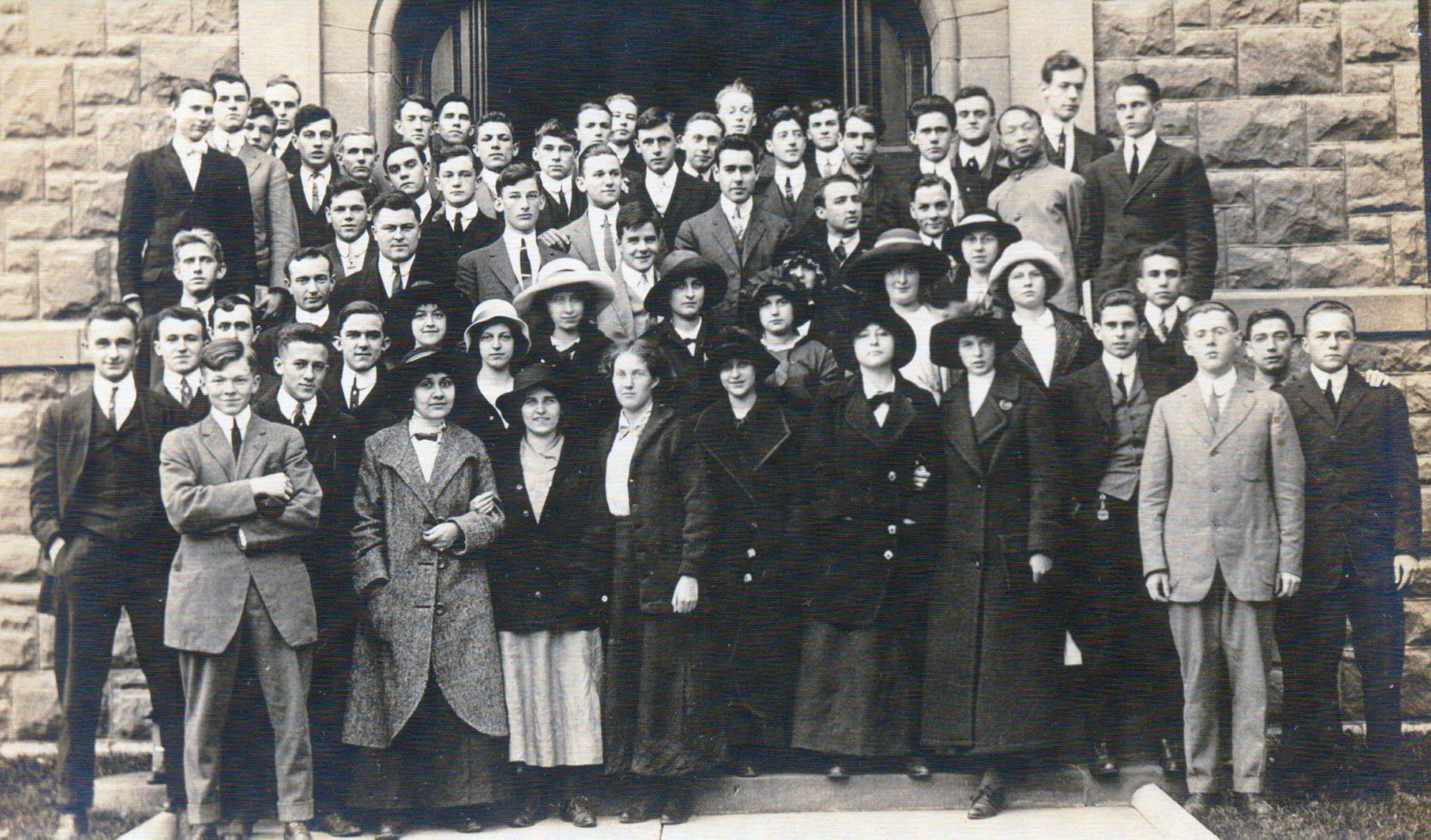 Postcard of the Class of 1917 as freshmen in 1913. Location Photograph Archives Format Photographic Print, B&W Postcard Decade 1910-1919 Class Year Class of 1917 Roles Students