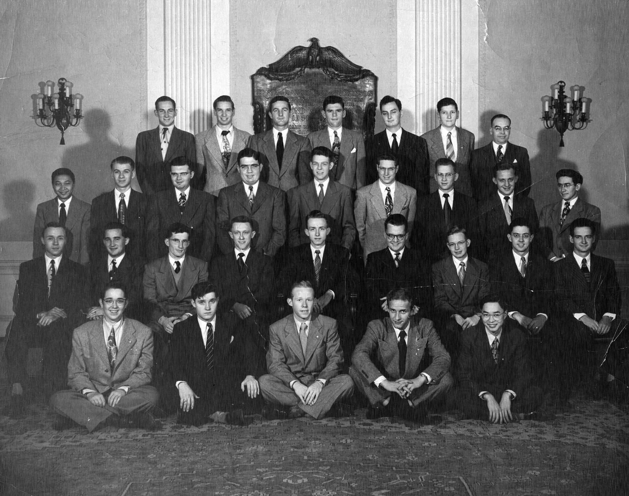 The Commons Club poses for a photograph in Memorial Hall in December 1949.