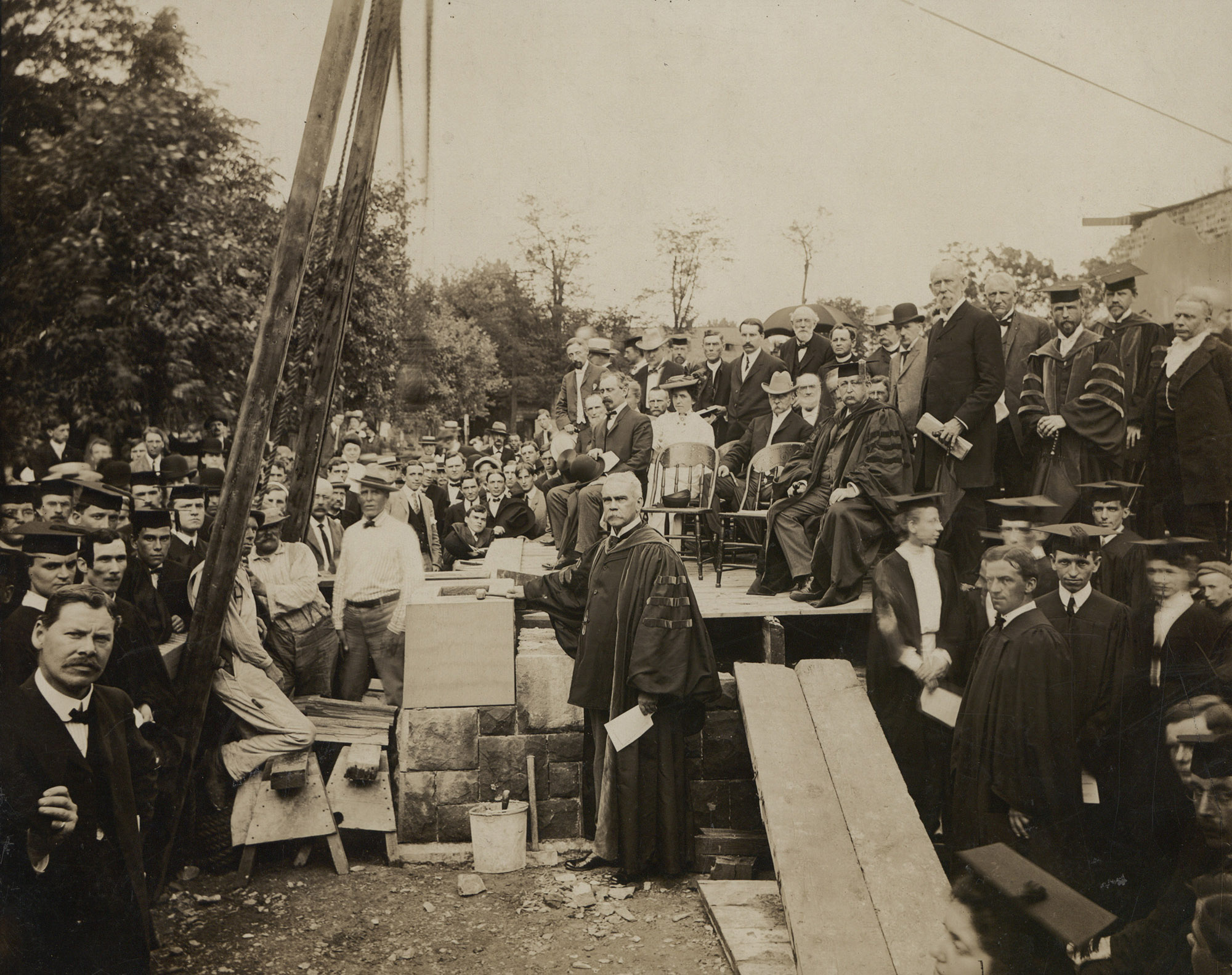 Members of the Dickinson College community, including students, faculty, and trustees, at the cornerstone laying ceremony for Denny Hall on June 7, 1904.