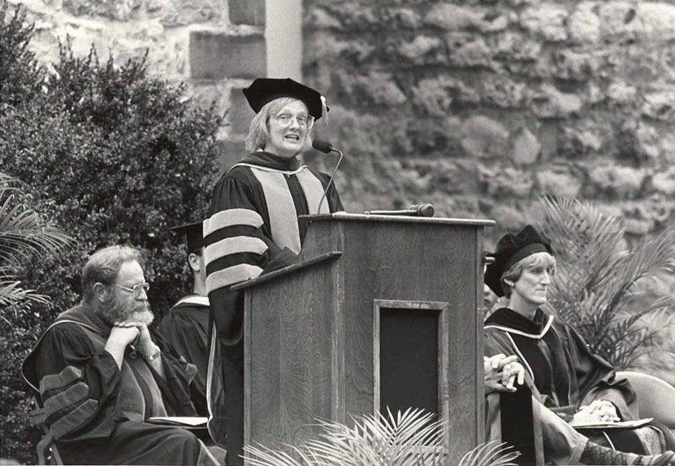 Dean of the College Lisa A. Rossbacher ('75) speaks at Convocation on August 28, 1995.