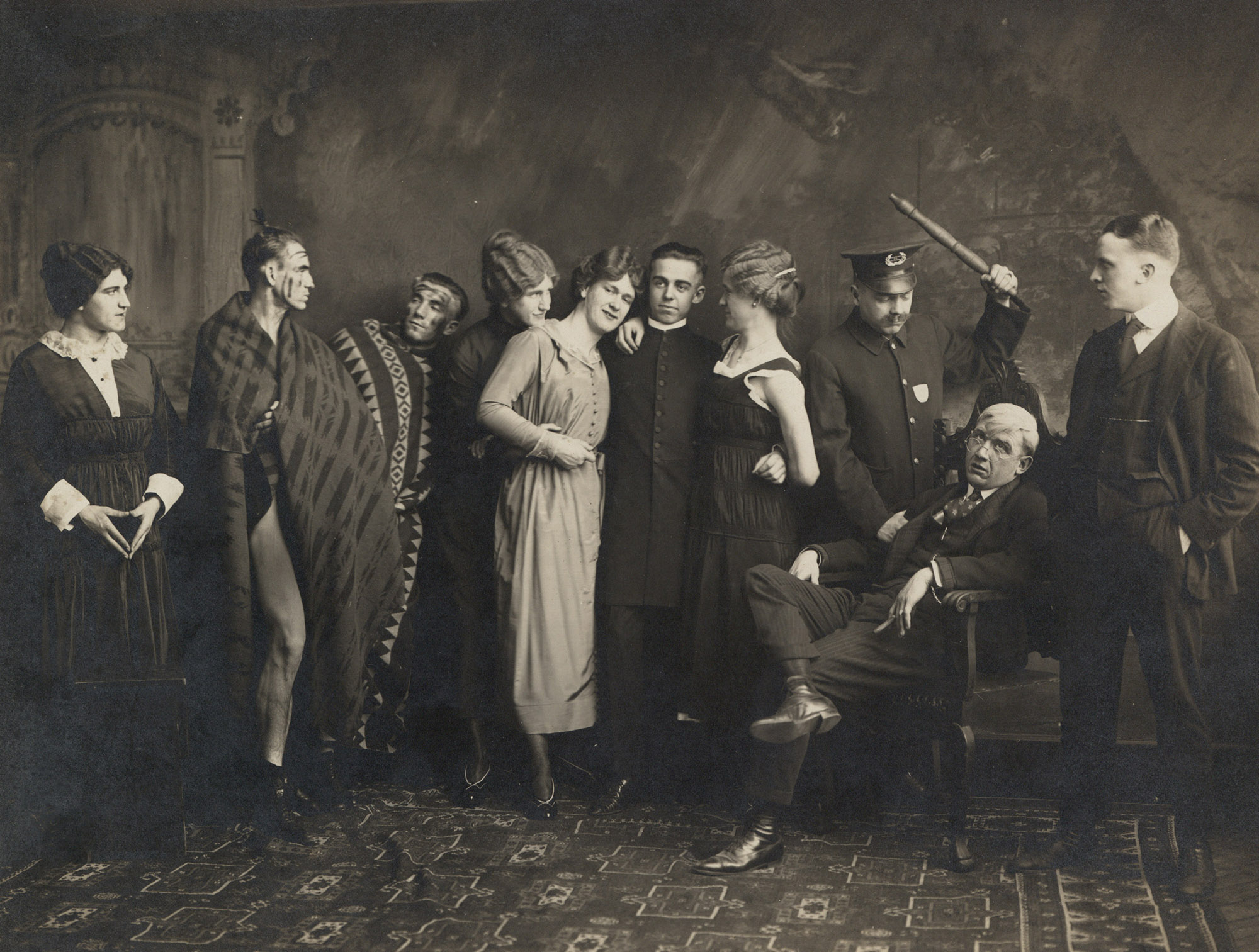 The cast of What Happened to Jones? poses for a group photo in February 1917.