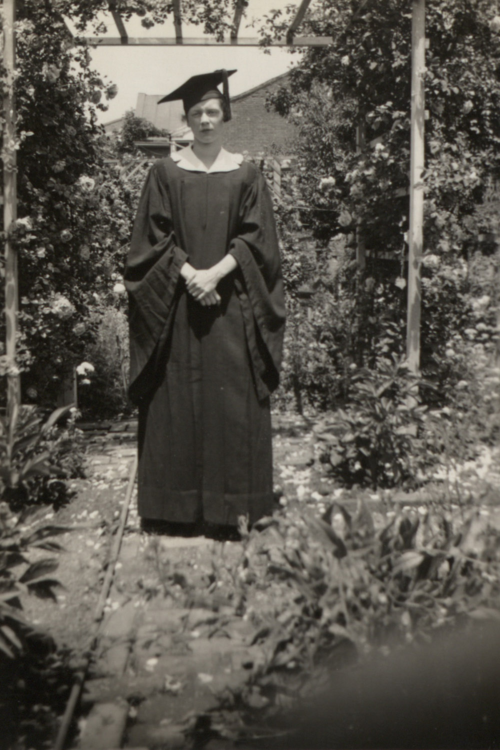 Elizabeth D. Flower poses for a graduation photo in 1935. Location Photograph Archives Format Photographic Print, B&W Decade 1930-1939 Roles Students People Flower James, Elizabeth Dunbar