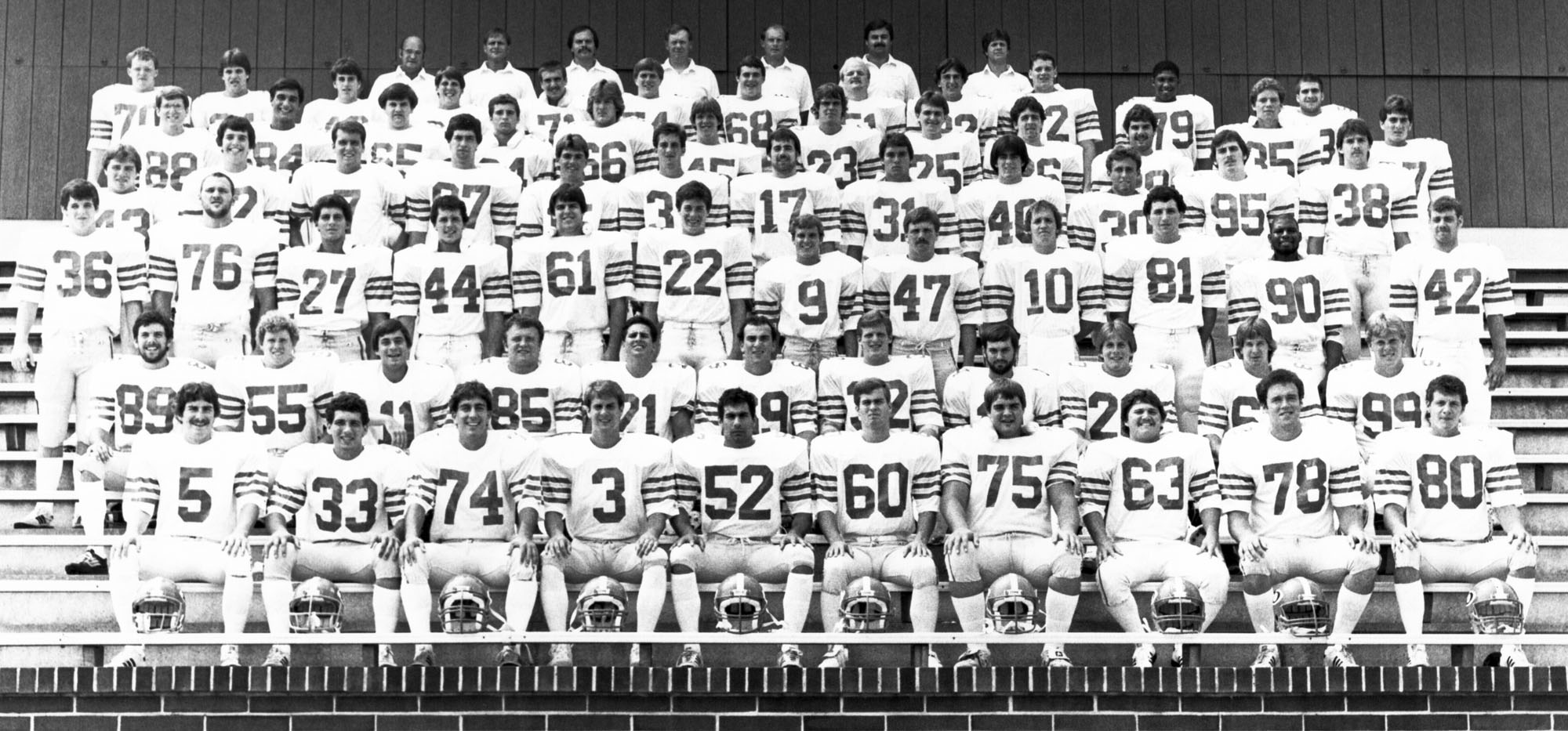 The 1983 football team poses for a picture.