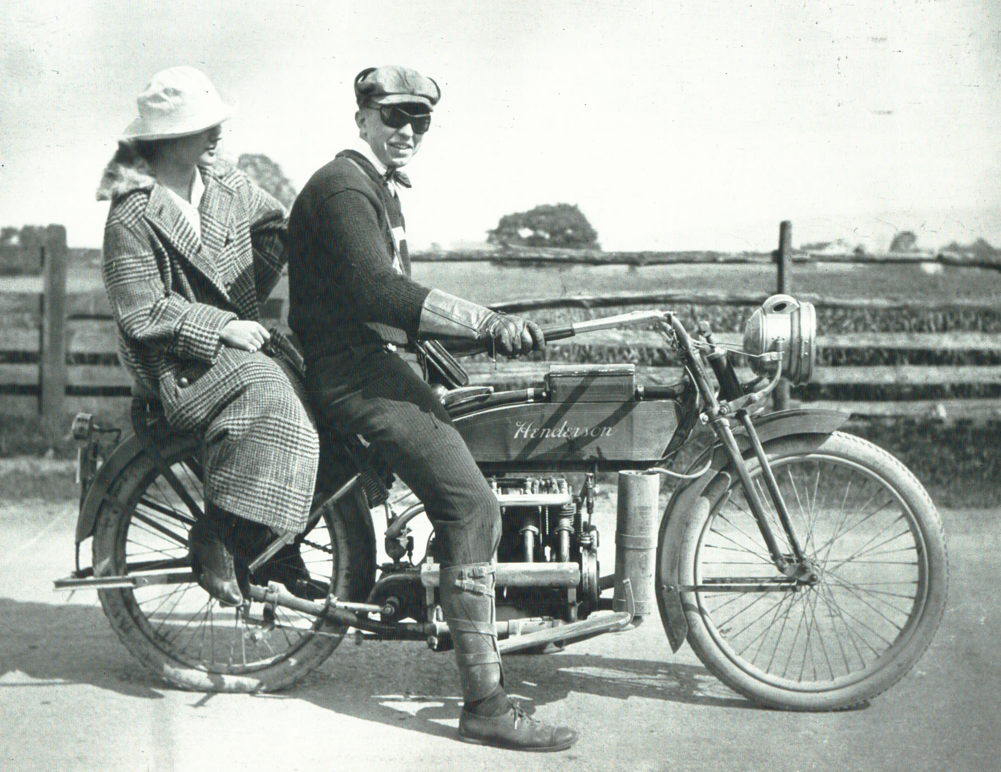 Frank Elmer Masland, Jr. and M. Clare Filler were both members of the Class of 1918. The photograph of the two students on a Henderson motorcycle was taken in 1915.