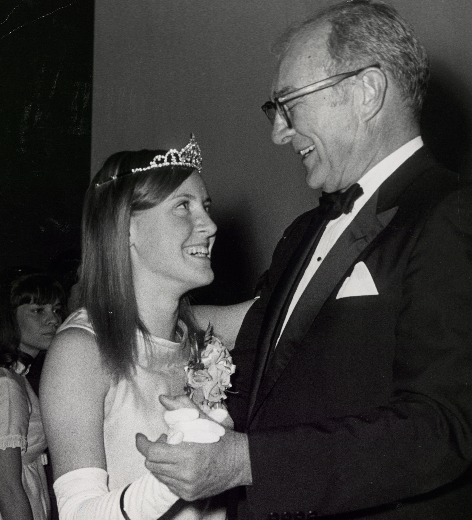 President Howard Rubendall dances with the homecoming queen around 1965.