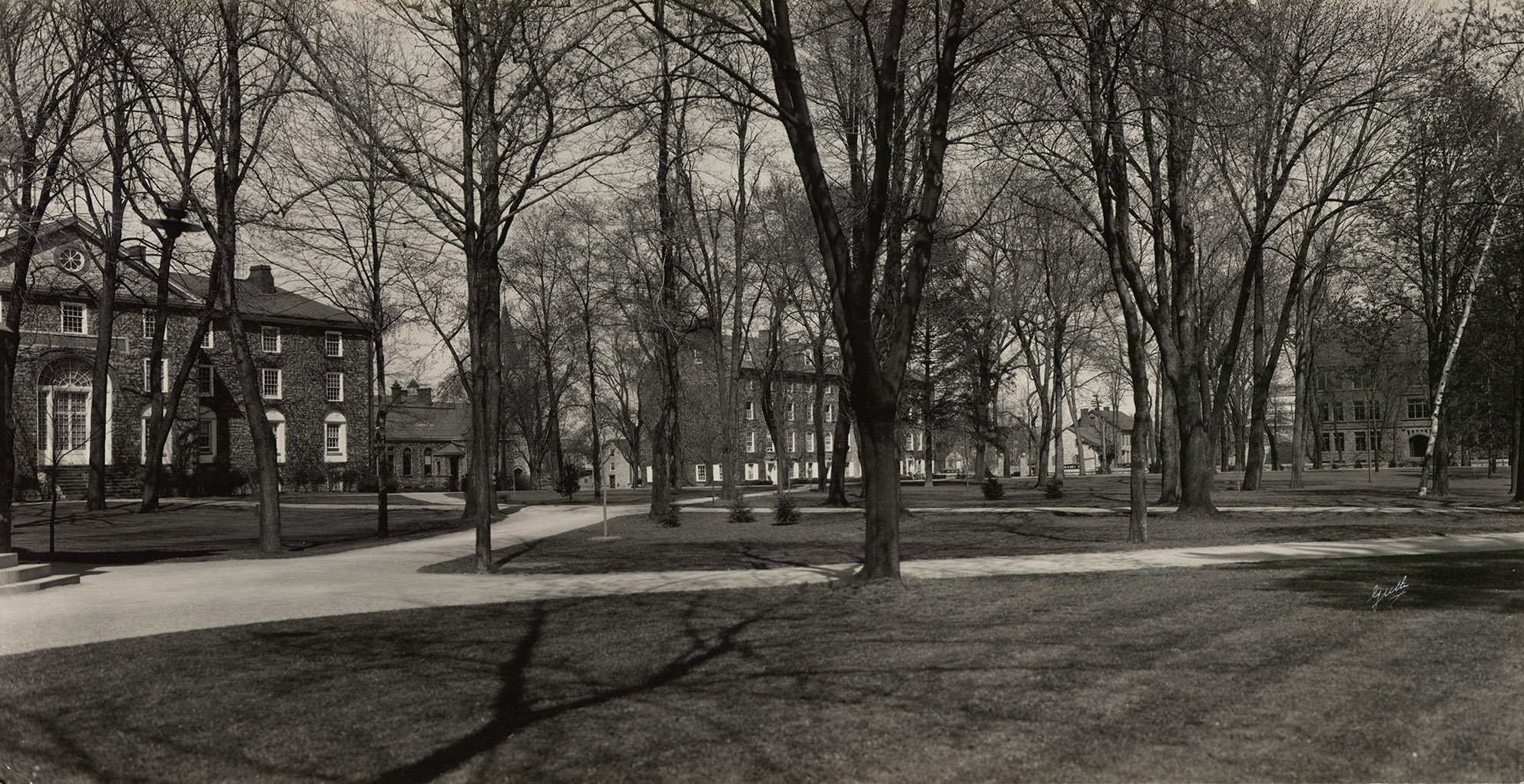 A wide angle view of the John Dickinson Campus with Old West, East College, and Denny Hall in the background.