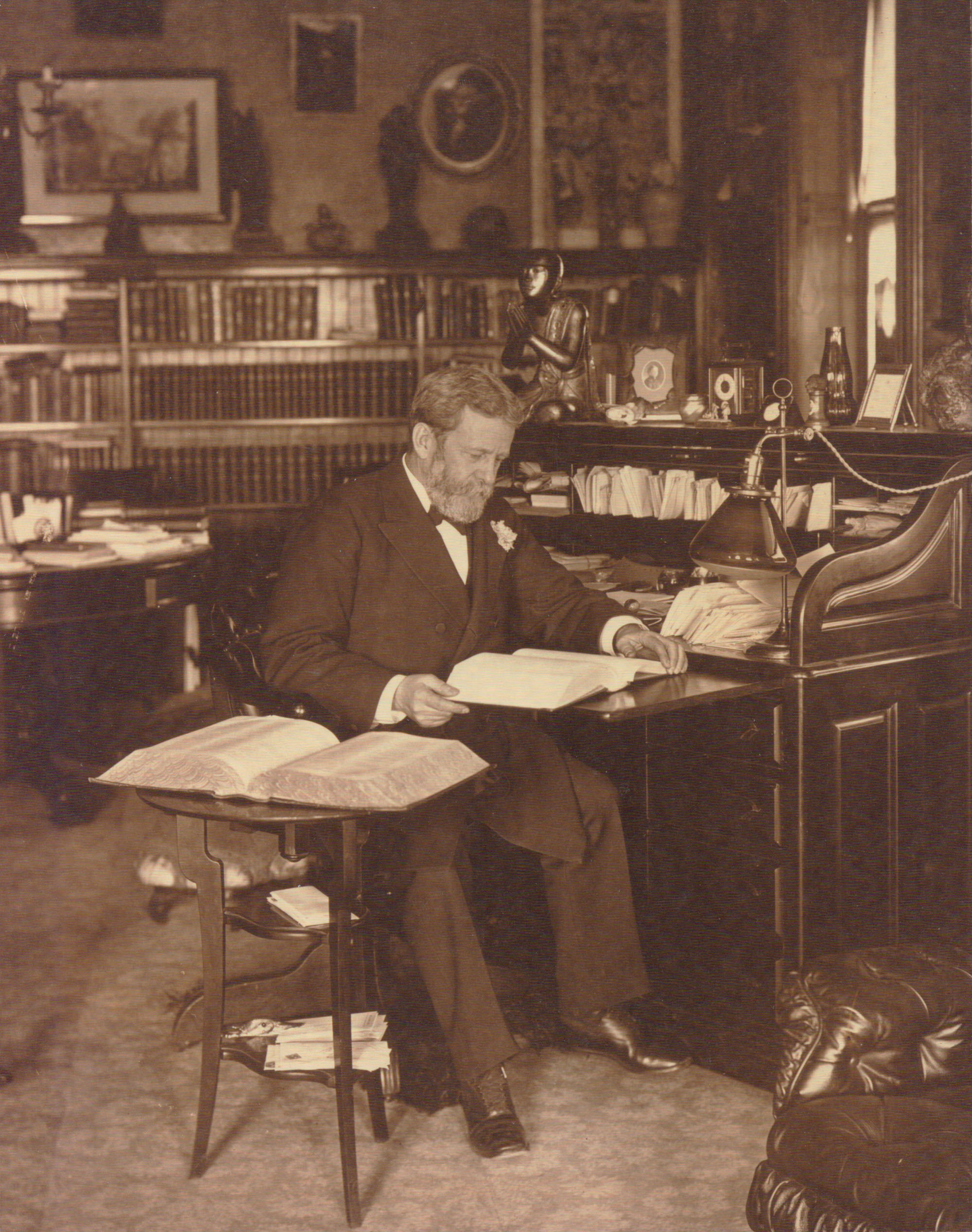 View of John Franklin Goucher (Class of 1868) in fall 1901. Location Photograph Archives Format Photographic Print, B&W Decade 1900-1909 Roles Alumni People Goucher, John Franklin