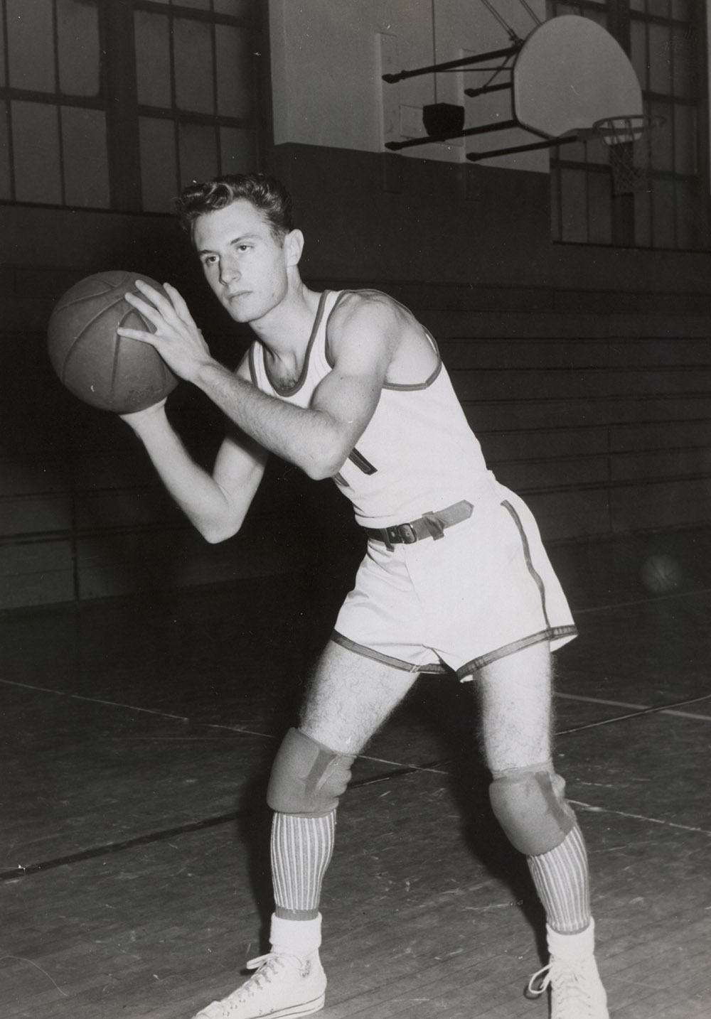 View of John Termini Valenti Jr. (Class of 1959) with a basketball.