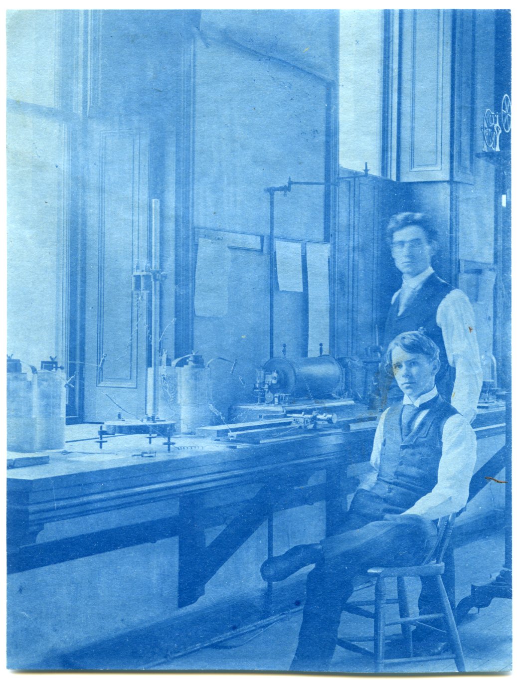Two male students in a lab in Tome Scientific Building around 1890.