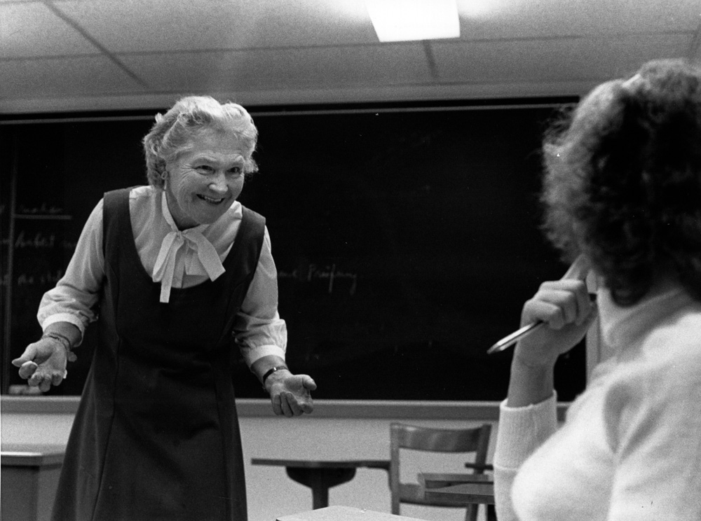 German and Russian professor Marianna Bogojavlensky teaches with a smile. Location Photograph Archives Format Photographic Print, B&W Decade 1980-1989 Roles Faculty People Bogojavlensky, Marianna Other Classes