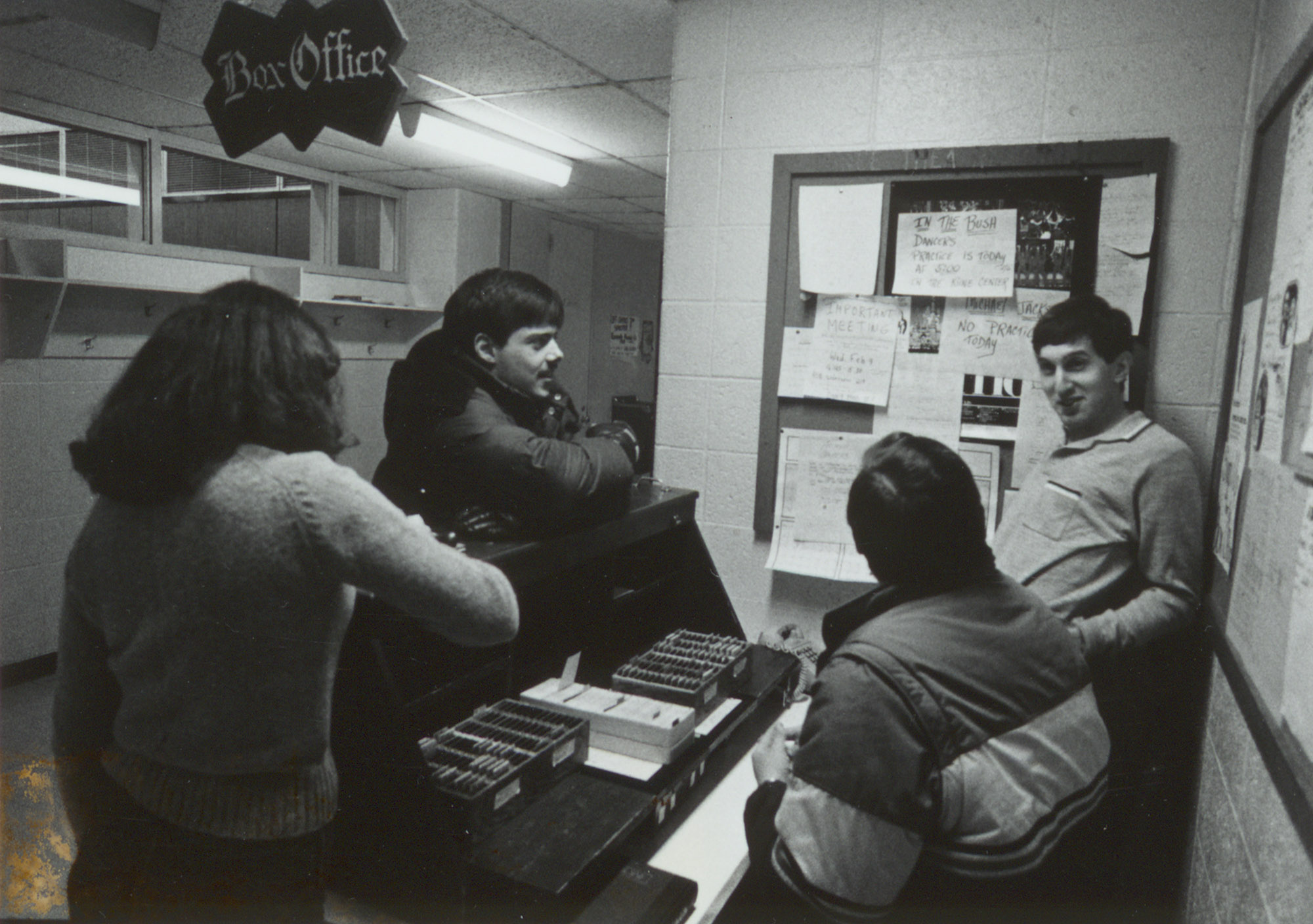 A group of students at the Mathers Theatre box office for the Mermaid Players' production of Elmer Rice's Street Scene, which opened on February 10, 1983.