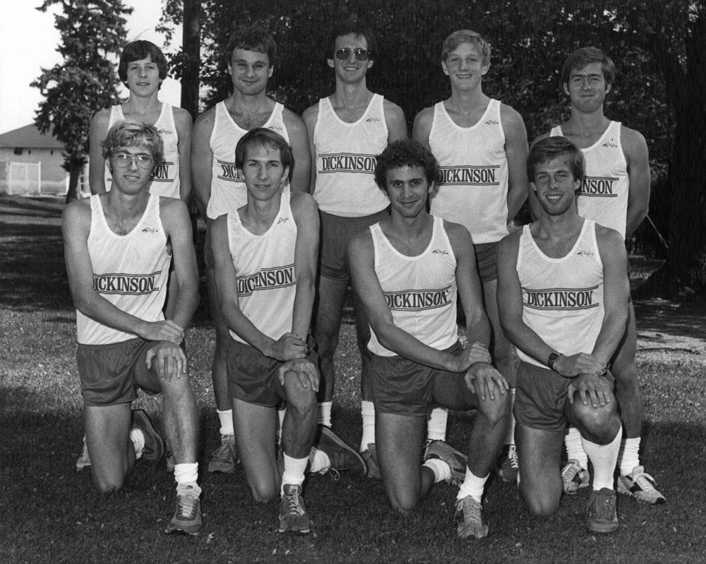 The men's cross country team poses for a photograph in 1981. Location Photograph Archives Format Photographic Print, B&W Decade 1980-1989 Athletics Cross Country (Men's) Roles Students