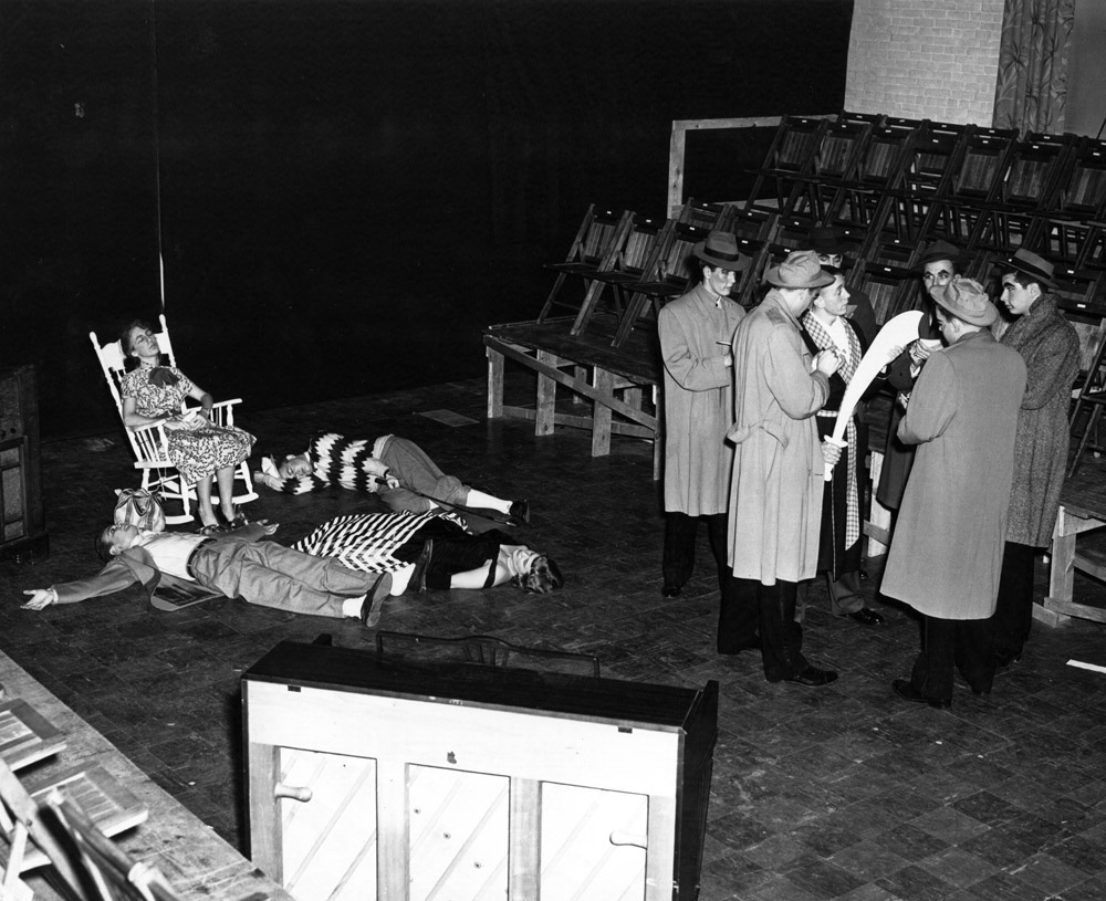 Actors perform in the Mermaid Players' production of Beggar on Horseback in November 1952.