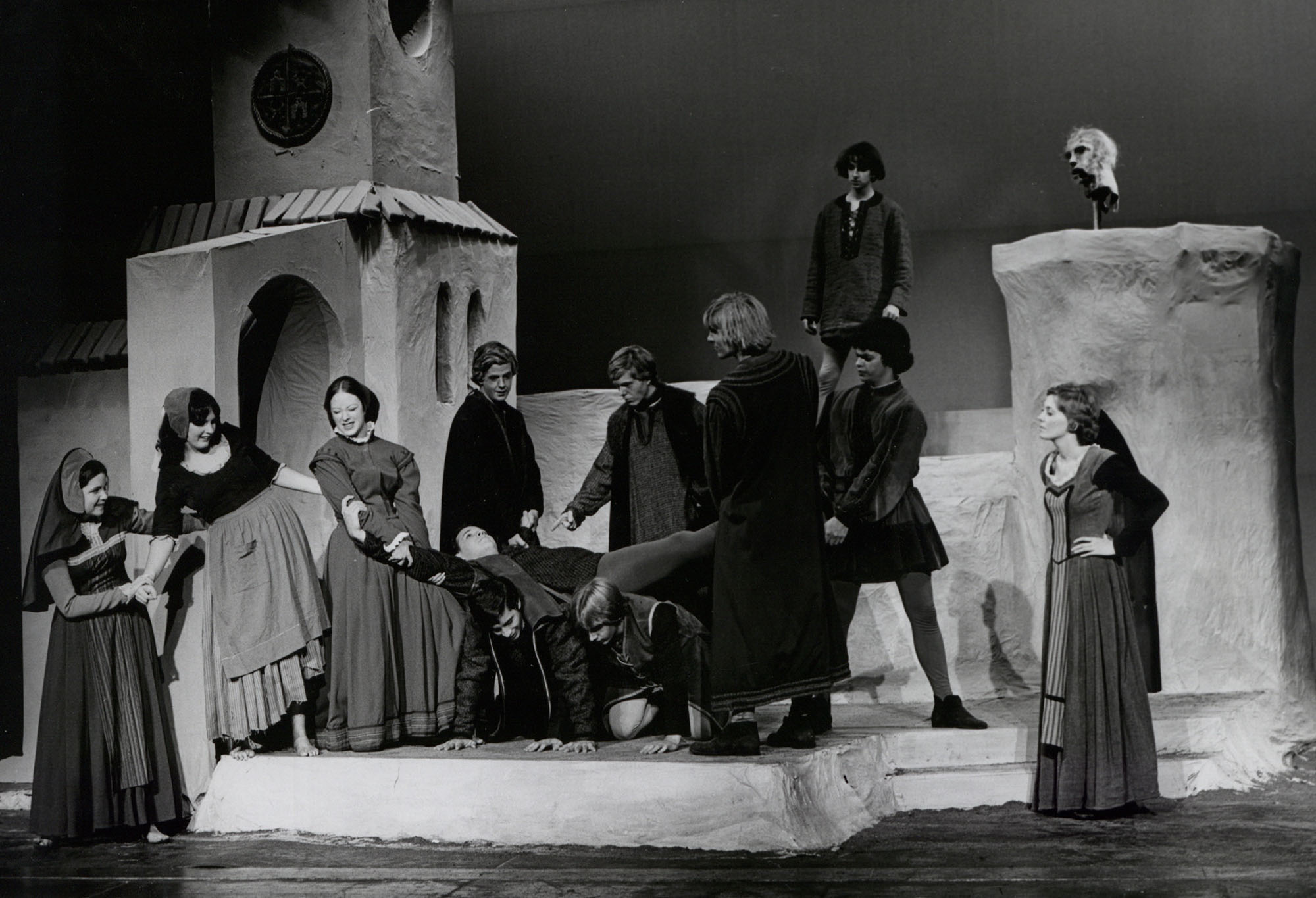 Actors perform in the Mermaid Players' production of Feunte Ovejuna in October 1975.