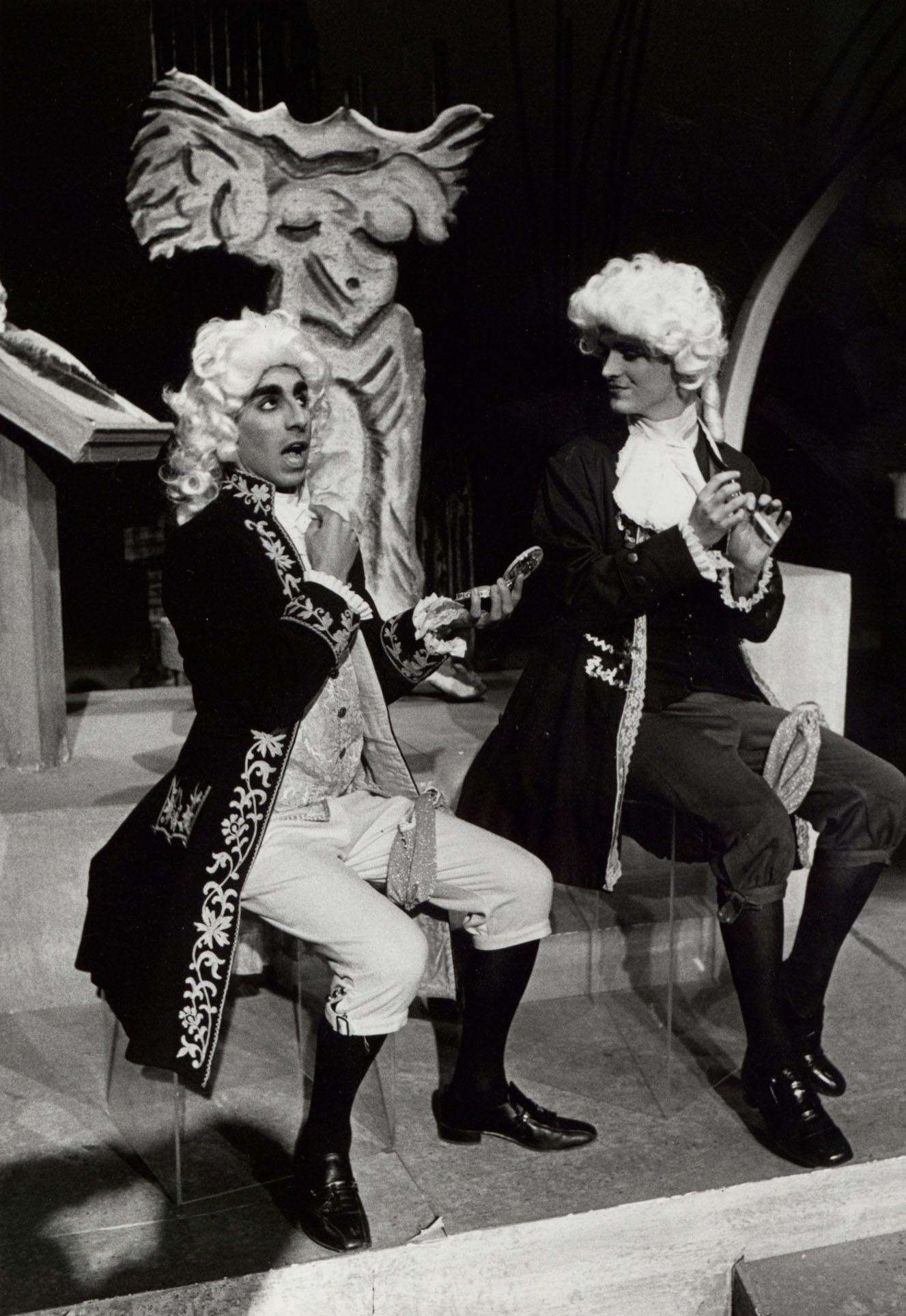 Two actors perform in the Mermaid Players' production of Misanthrope in April 1986.