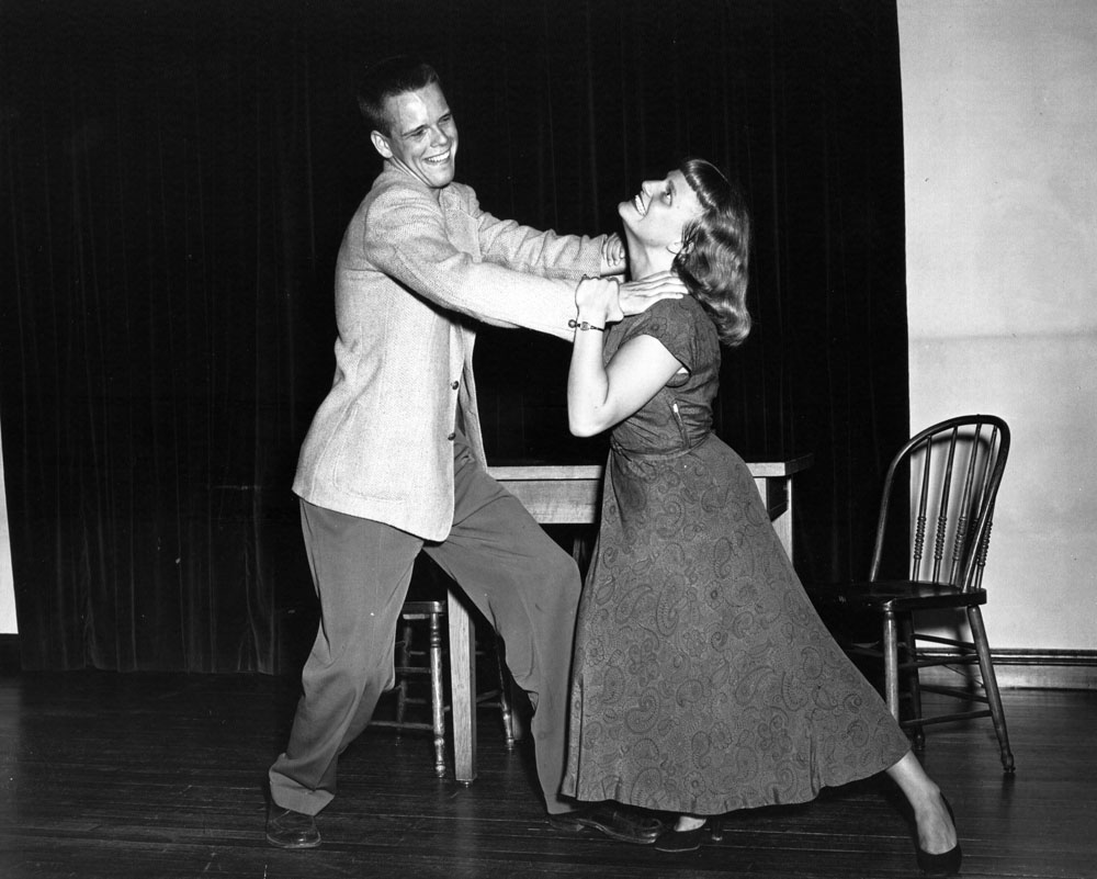 Phil Anderson performs as Inkwell and Ann "Nancy" Boyd ('53) as Pencil in the Mermaid Players' production of Alice Gerstenberg's The Pot Boiler in June 1953.