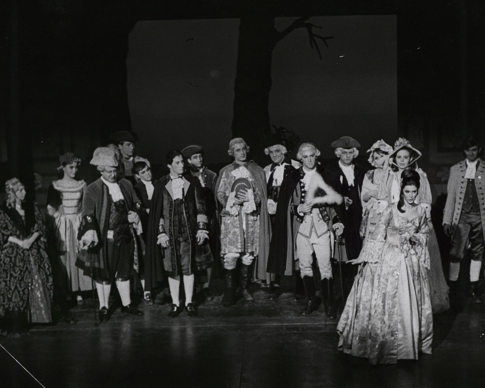 Student actors perform in the Mermaid Players' production of The Rivals in February and March 1968.