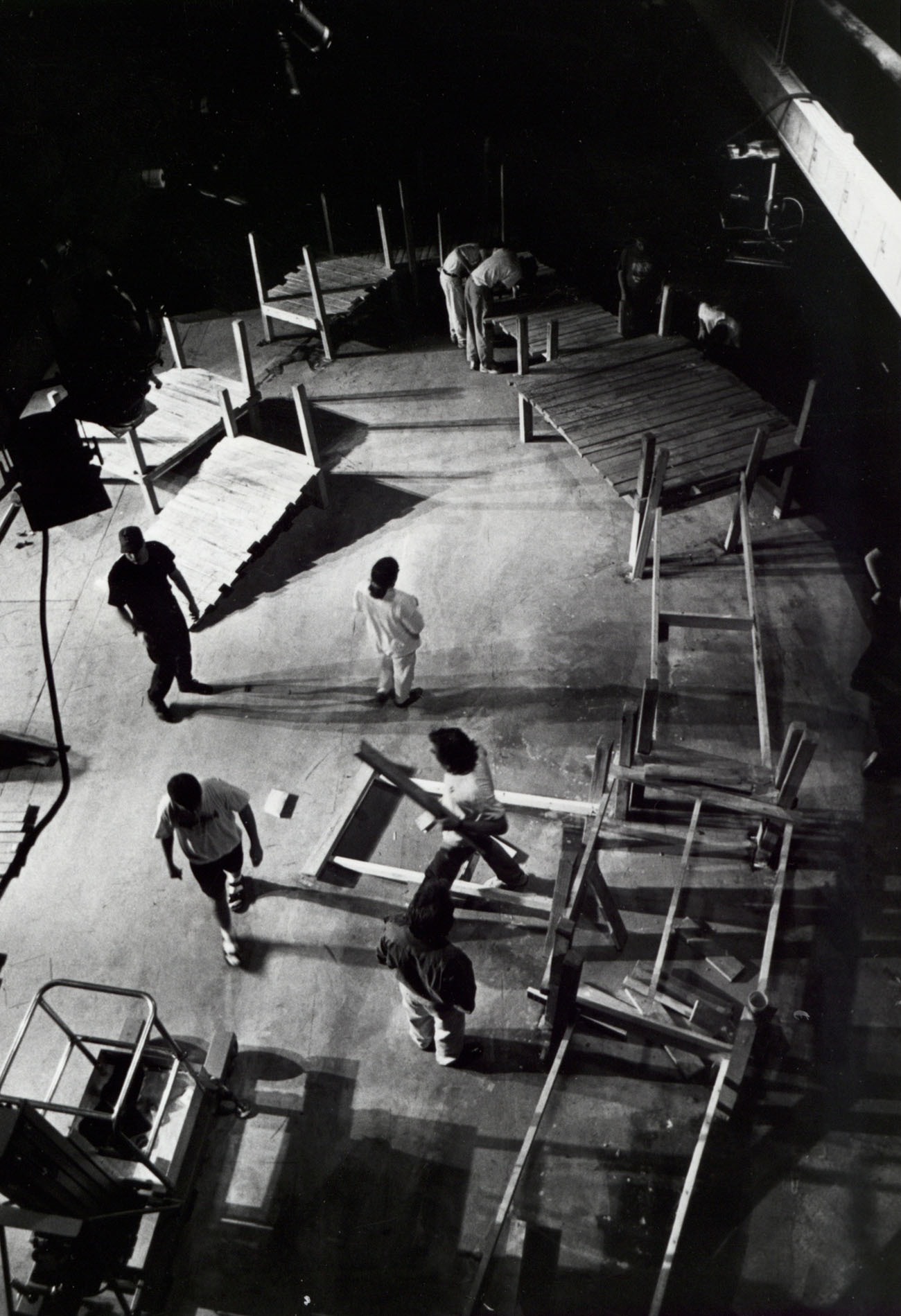 Students help build the set for the Mermaid Players' production of Romance Language in October 1993.