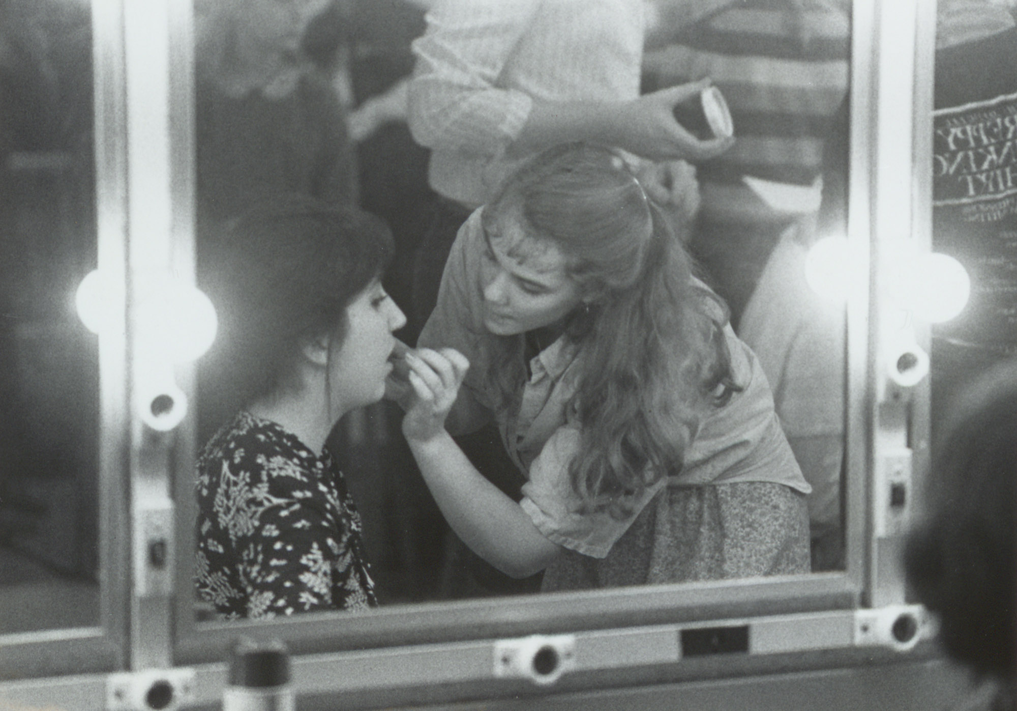 View backstage in Mathers Theatre as two students prepare for the Mermaid Players' production of Elmer Rice's Street Scene, which opened on February 10, 1983.
