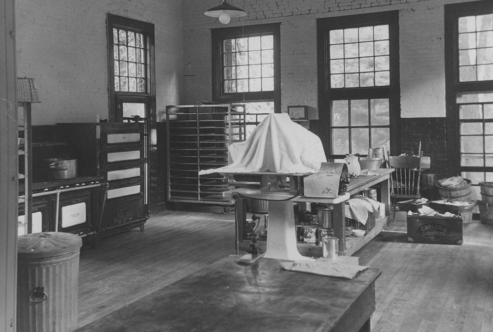 View of the Mess Hall kitchen in 1944. The 32nd College Training Detachment use this facility during World War II.