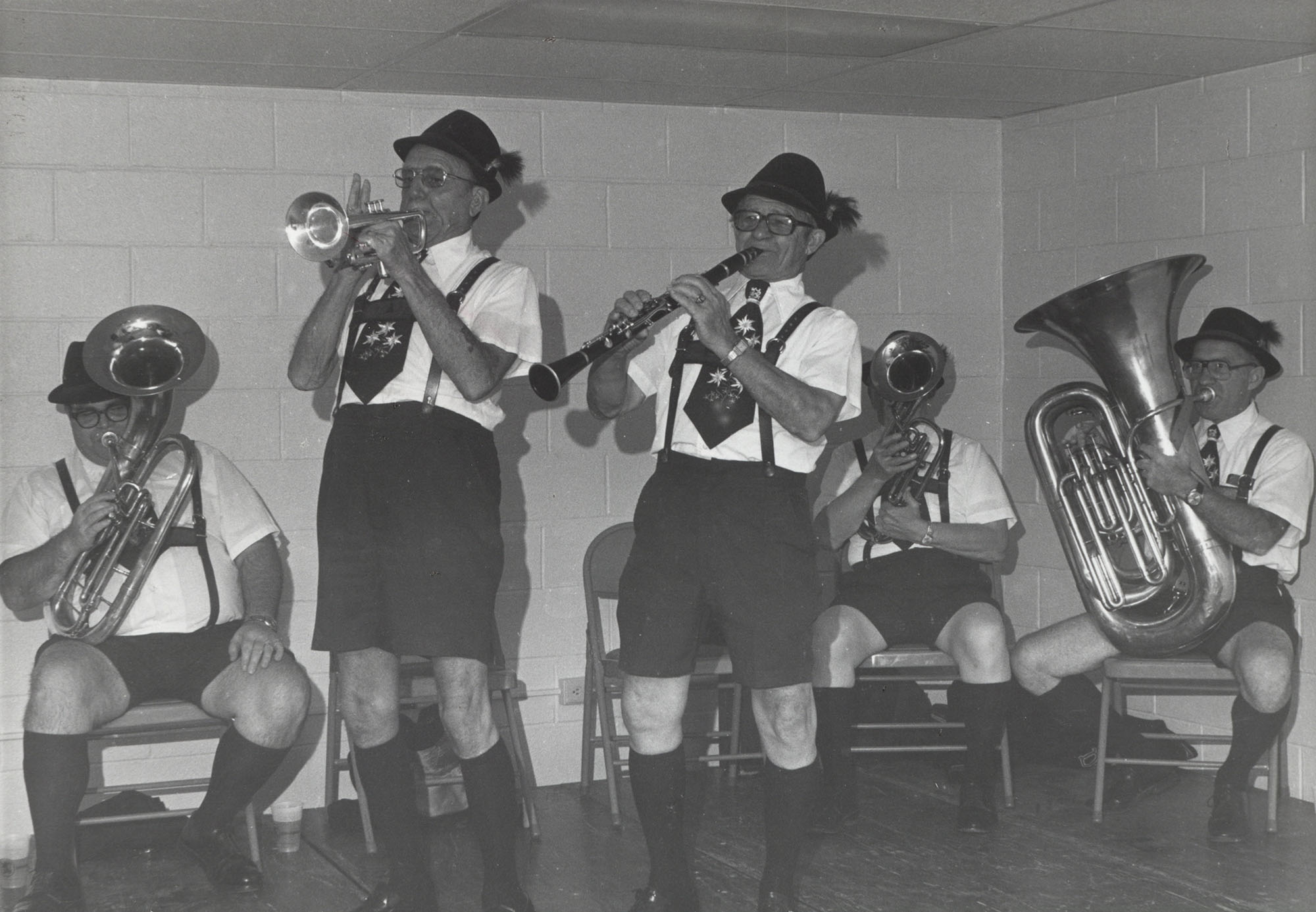 A band plays at the Oktoberfest celebration during Homecoming weekend in October 1981.