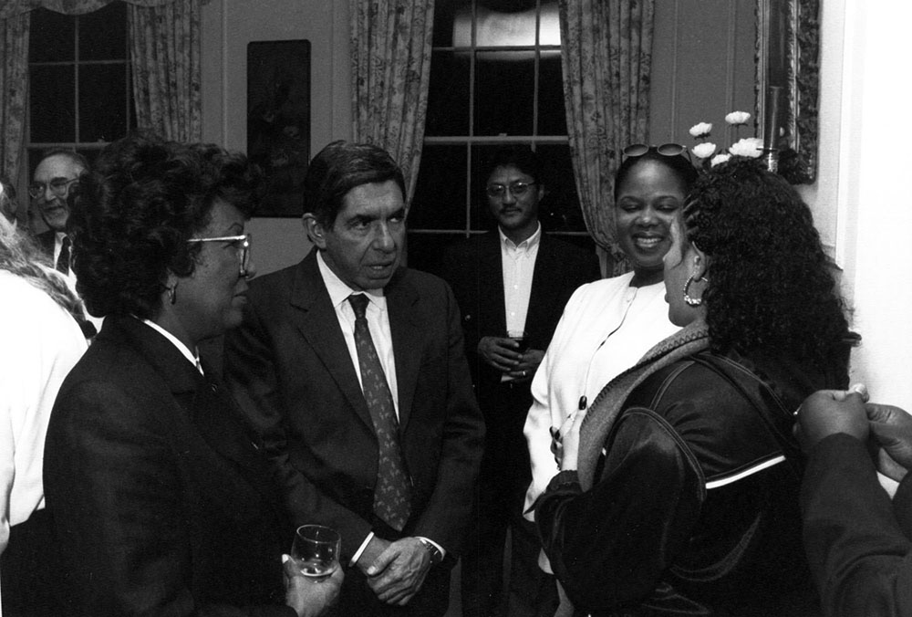Oscar Arias Sanchez at a reception after he receives his honorary Doctor of Humanitarian Service degree on May 18, 1997.
