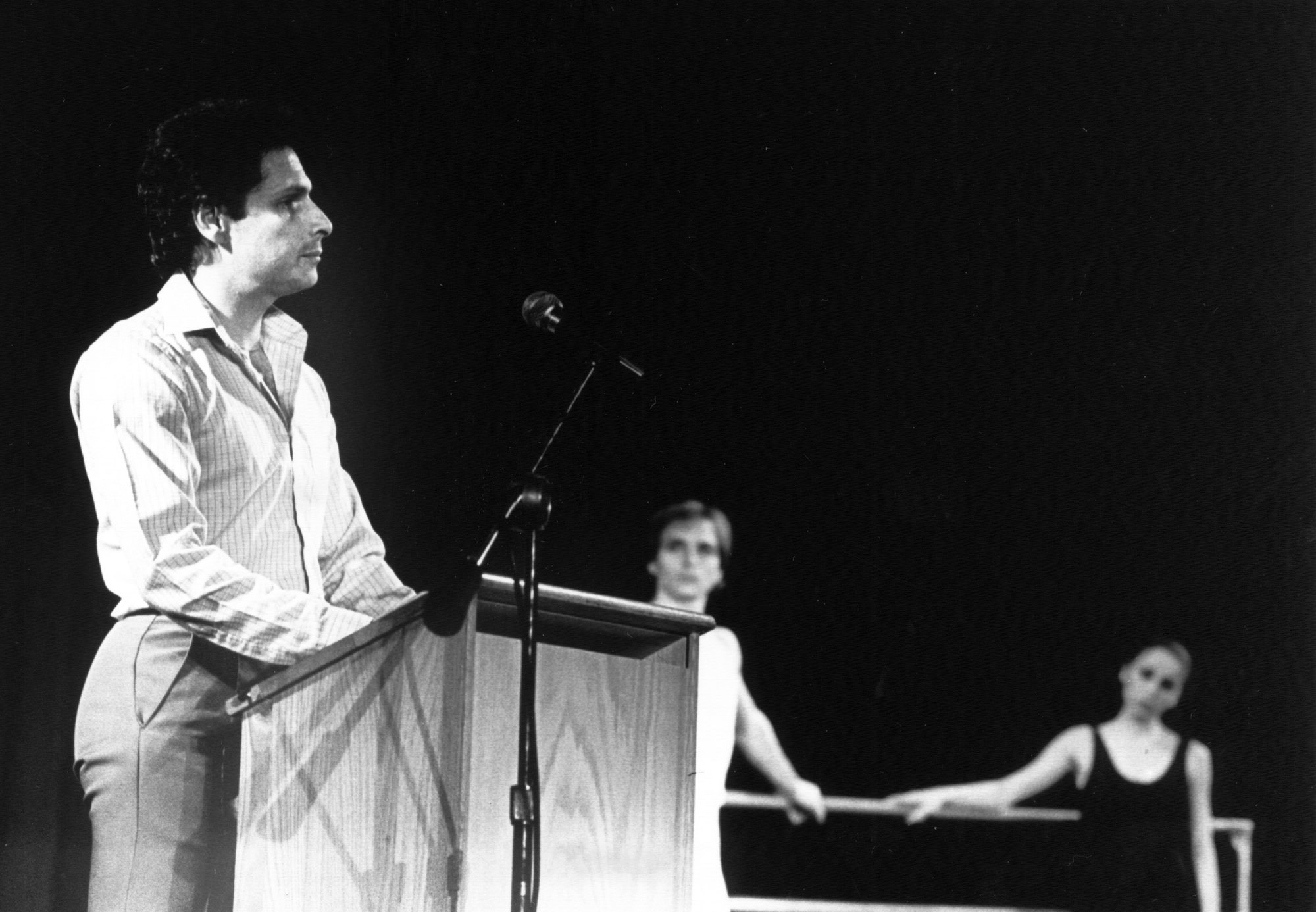 Artistic director Robert Weiss gives a lecture after accepting the Arts Award on behalf of the Pennsylvania Ballet in April 1984.