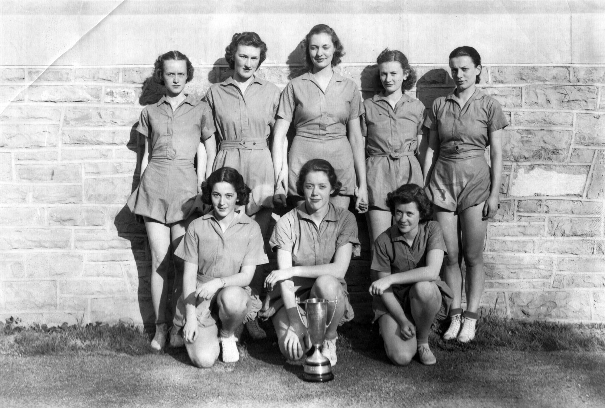 Members of the Pi Beta Phi basketball team, which won the inter-sorority basketball tournament in 1938.