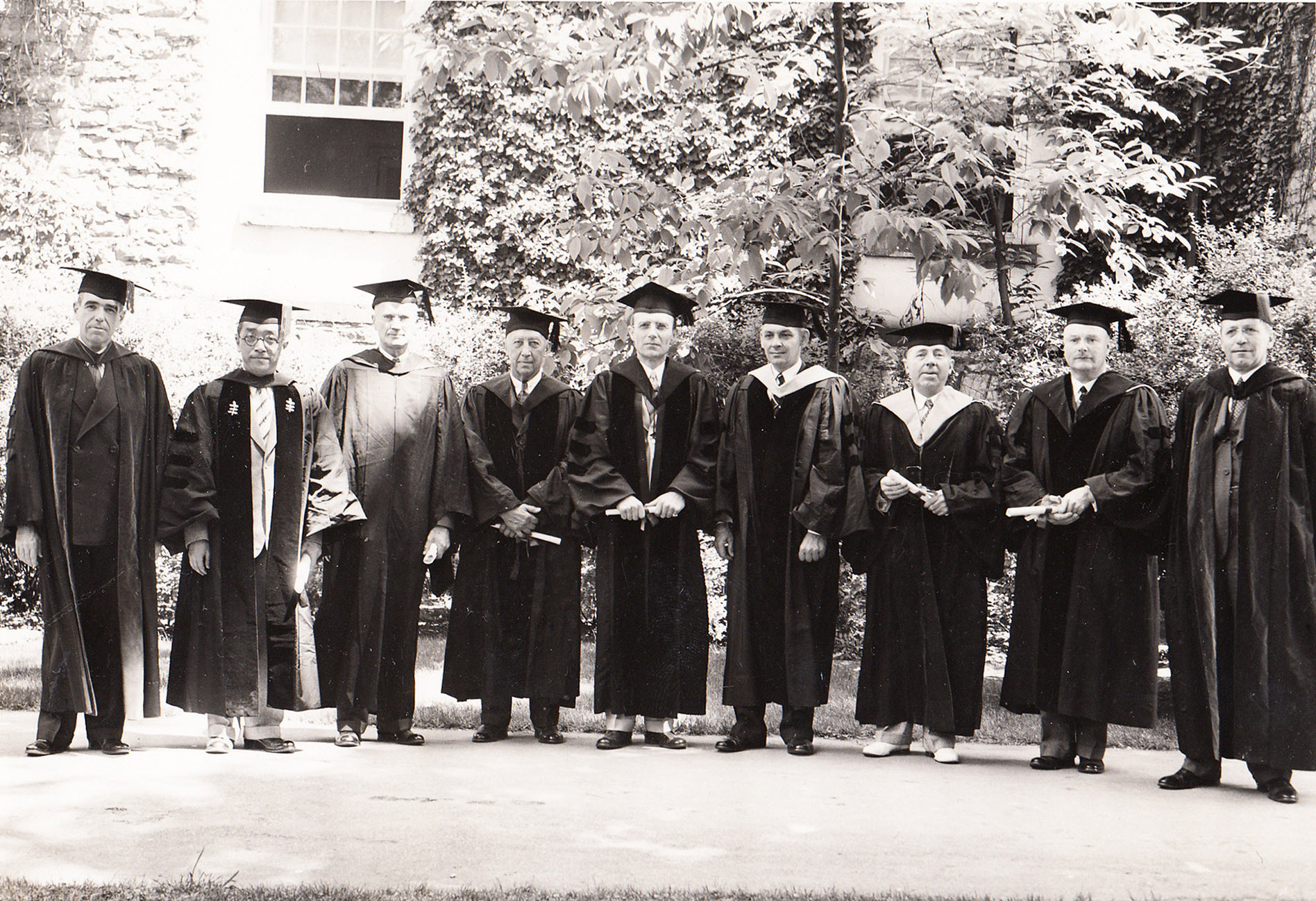President Fred Corson '17 (far left) stands with Honorary degree recipients, including Robert F. Rich '07 (third from left) and Robert H. Montgomery (fourth from left), during Commencement on June 9, 1941.