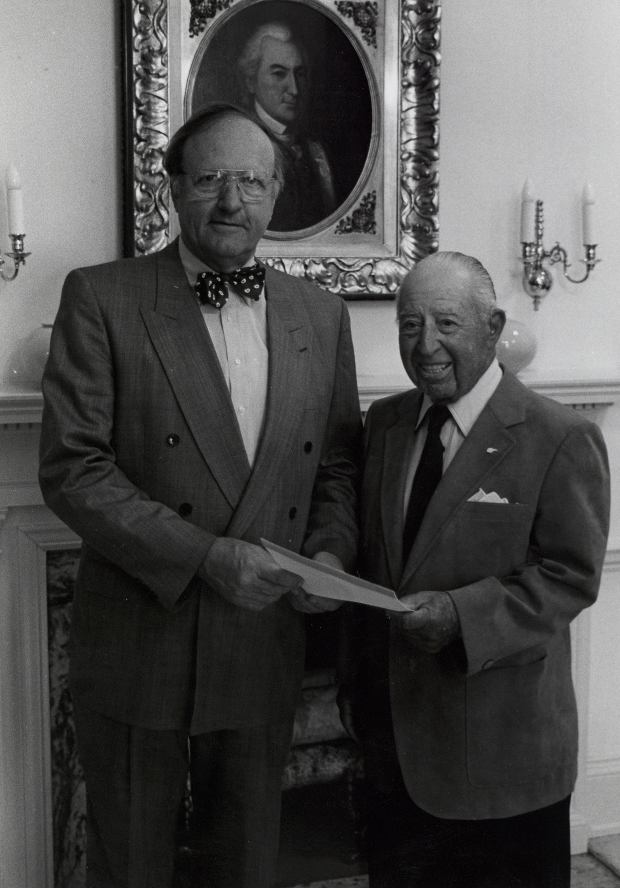 View of President Fritschler and Winfield Cook around 1990. Location Photograph Archives Format Photographic Print, B&W Decade 1990-1999 Roles Alumni Presidents People Fritschler, A. Lee Cook, Winfield Clinton