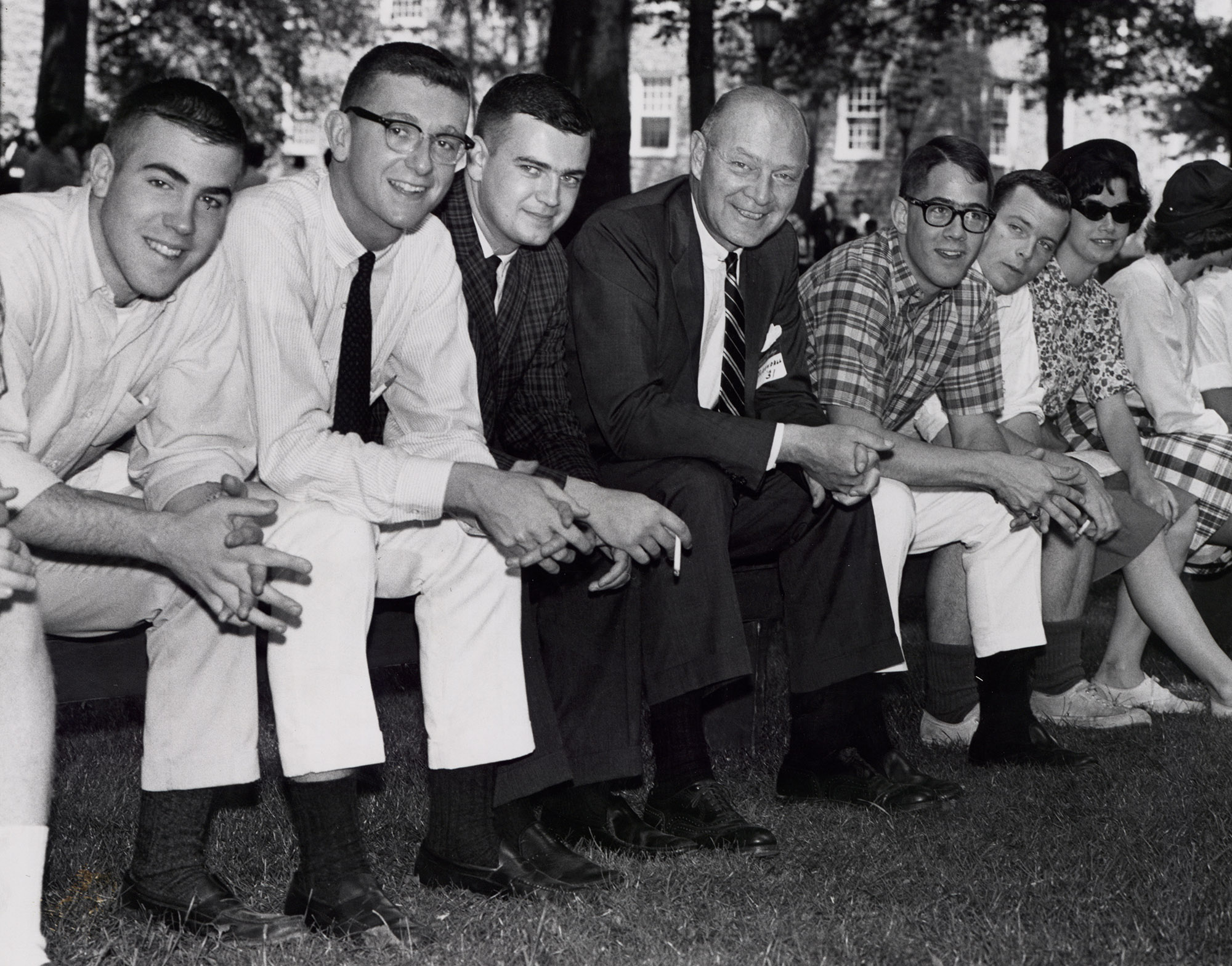 President Howard L. Rubendall sits with a group of students in June 1963.
