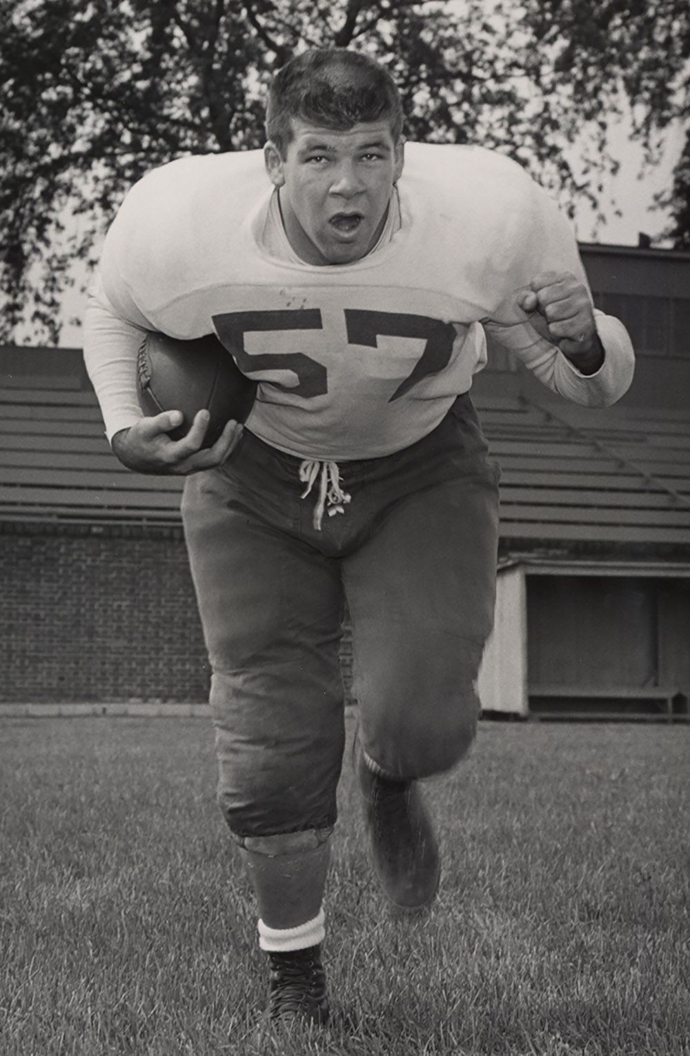 Robert Edward Cook, a member of the Class of 1959, in his football uniform.