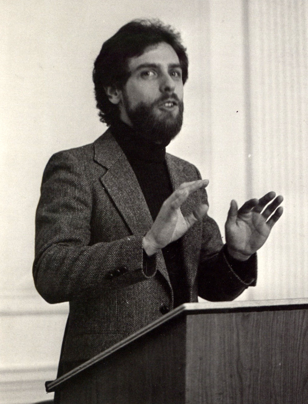 Robert Entman, Professor of Political Science, lecturing. Location Photograph Archives Format Photographic Print, B&W Decade 1970-1979 Roles Faculty People Entman, Robert M.