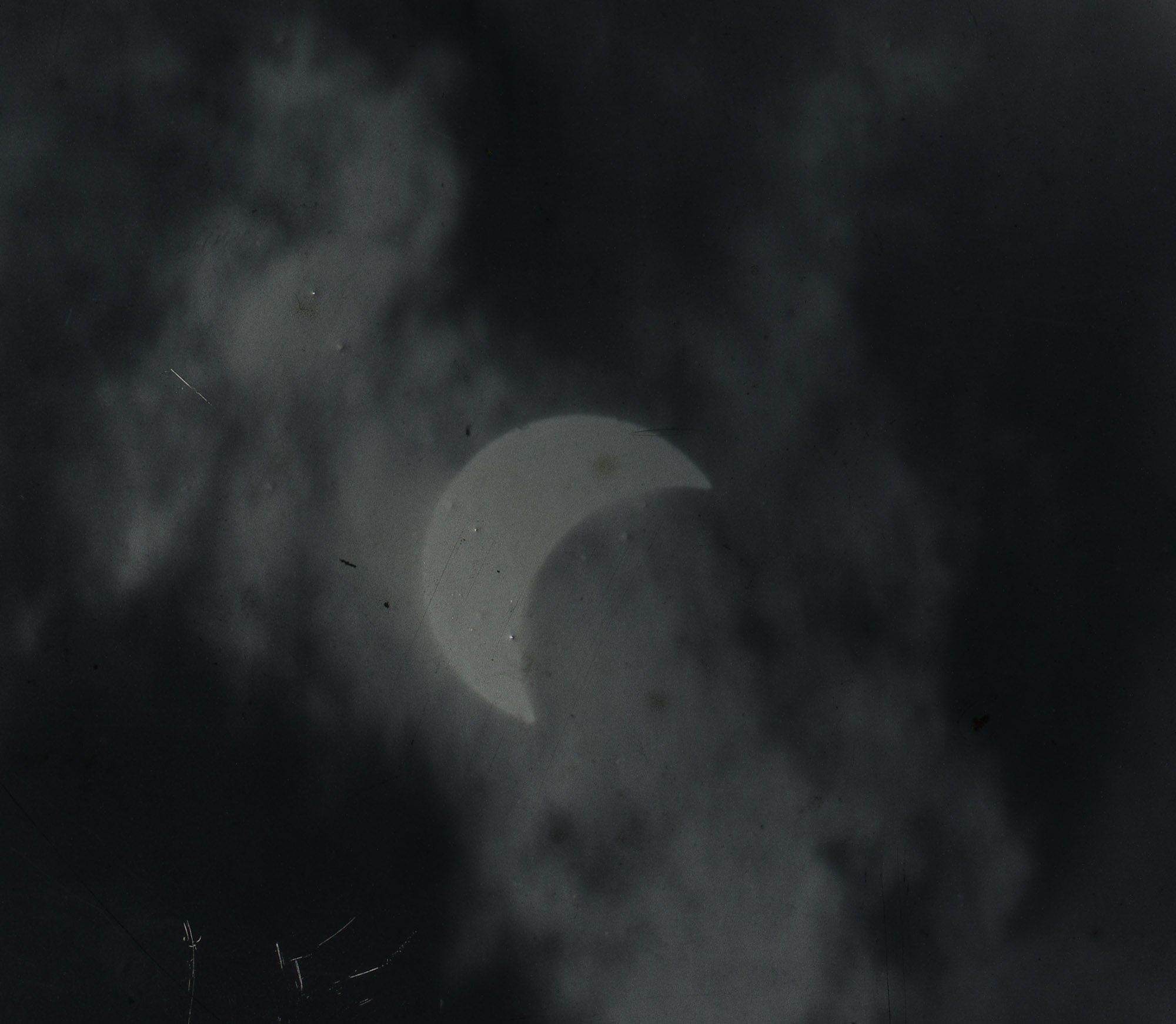 View of the solar eclipse on August 7, 1869. Natural Science Professor Charles F. Himes (Class of 1855) is part of a team of photographers sent to Ottumwa, Iowa to document the eclipse.
