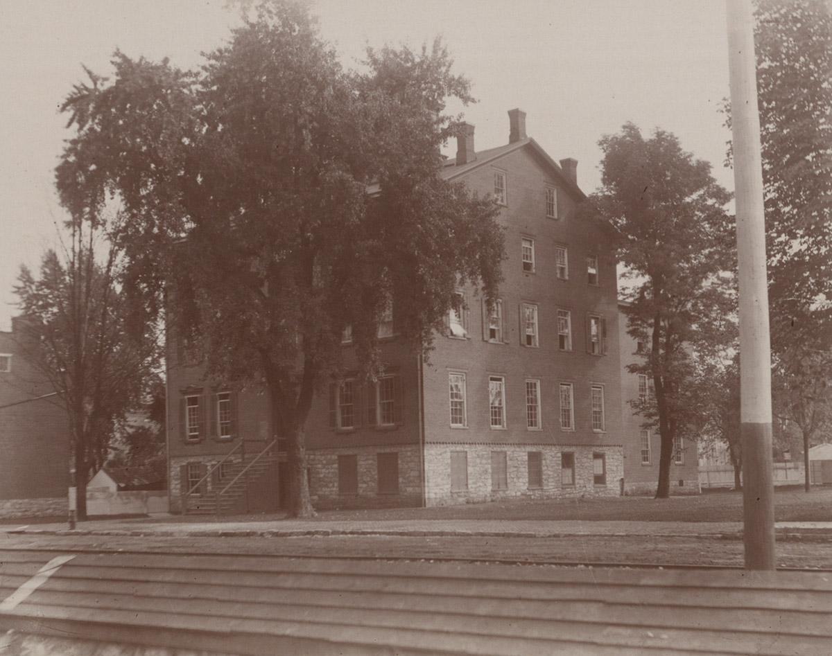 View of South College from W. High Street around 1895. Location Photograph Archives Format Photographic Print, B&W Decade 1890-1899 Places South College II