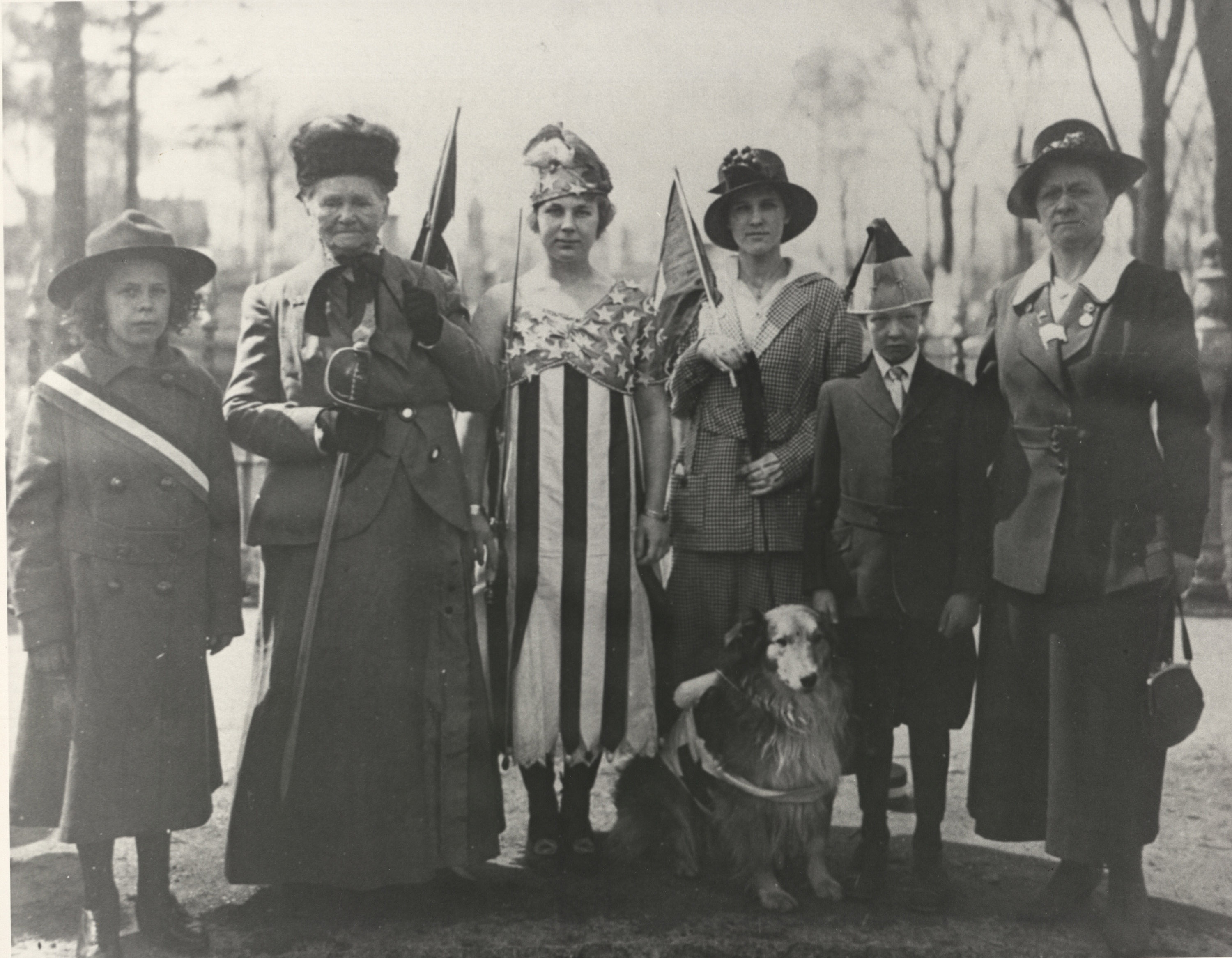 Left to Right: Zatae Gale Straw ; Lydia Haverstick Longsdorff ; Enid Straw Chamberlin ; Gertrude M. Grey ; Carlo the dog ; Wayne C. Straw ; Zatae Longsdorff Straw