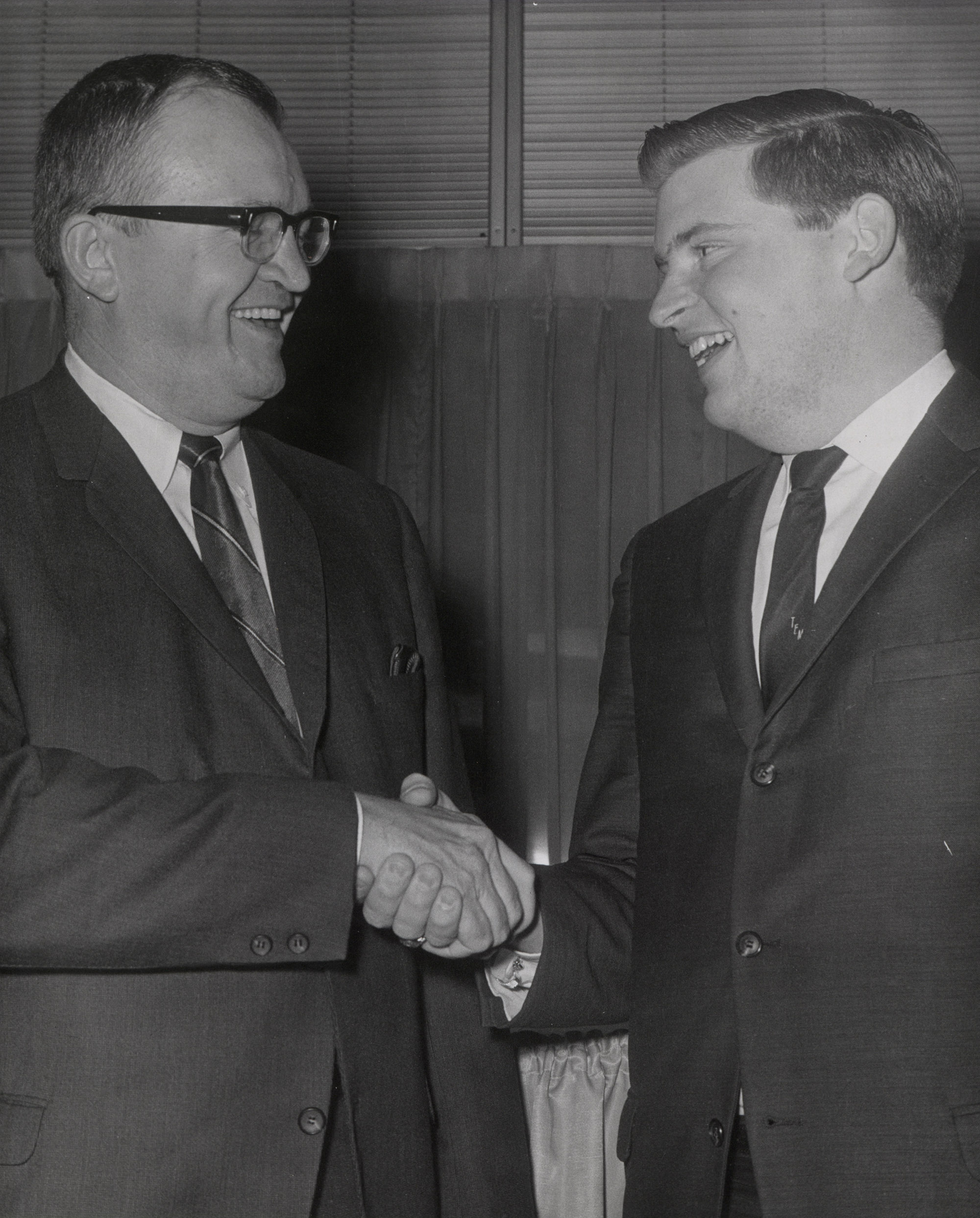 View as Vincent Joseph Schafmeister Jr. (left) shakes someone's hand. Schafmeister is a member of the Class of 1949. Location Photograph Archives Format Photographic Print, B&W Decade 1970-1979 Roles Alumni People Schafmeister, Vincent Joseph (Jr.)